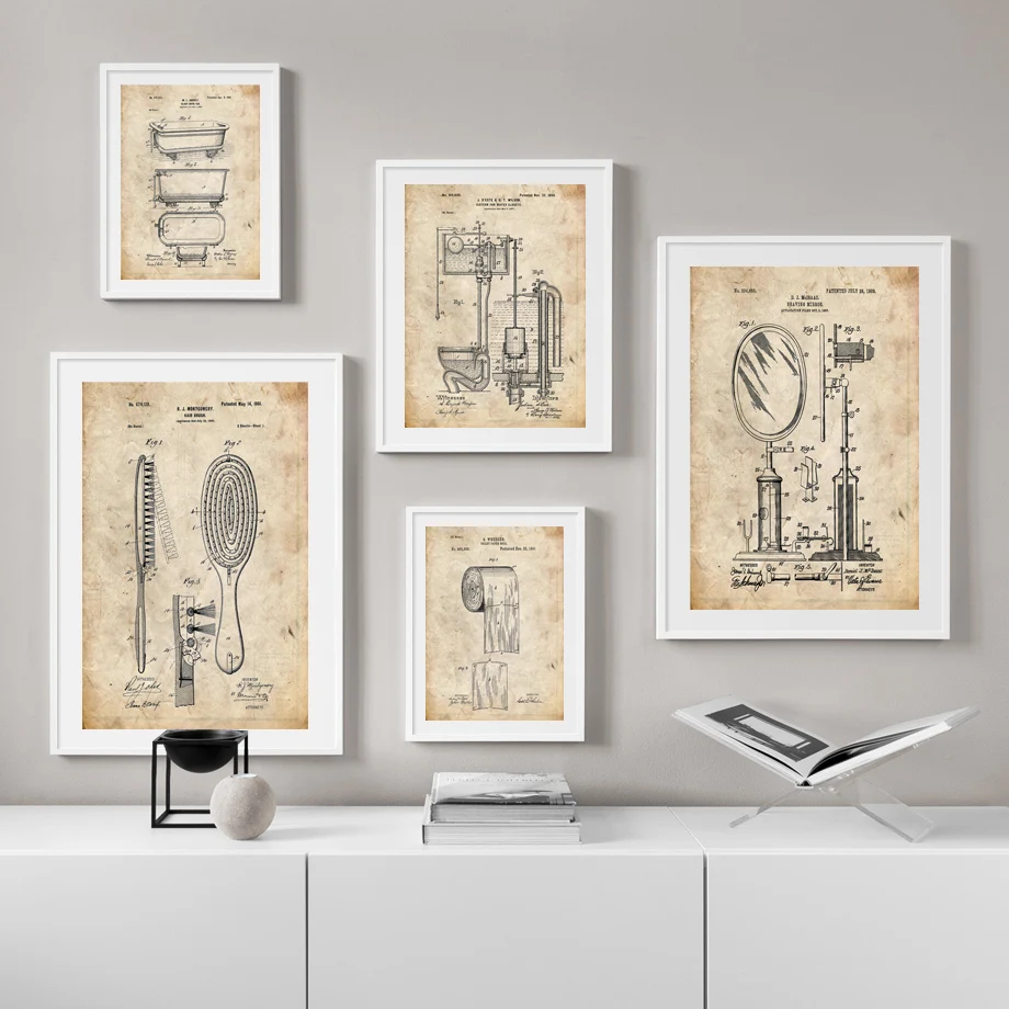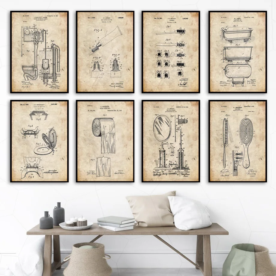 Промышленный стиль барбершоп патент Blueprint унитаз картинки Настенная живопись холст скандинавские постеры и принты декор для ванной комнаты