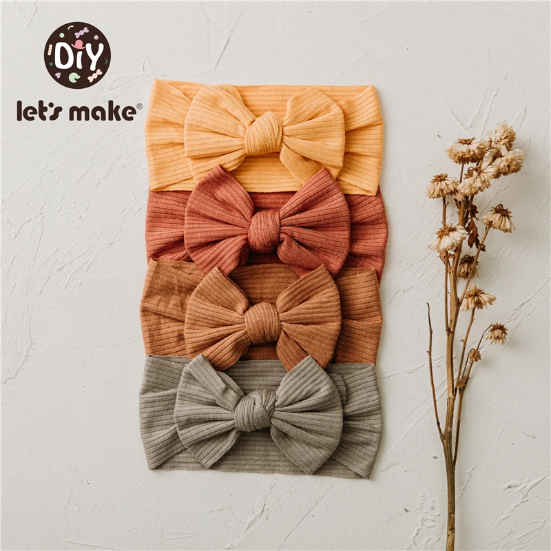 Детская повязка на голову Let's make, хлопковые аксессуары для волос для девочек, эластичная повязка на голову с бантом для маленьких принцесс, подарки на Рождество