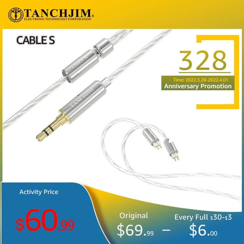 Кабель TANCHJIM S Upgrade Line 3,5 мм, односторонний, 2,5 мм, балансный, 4,4 мм, балансный, 0,78 мм2-контактный обновленный кабель