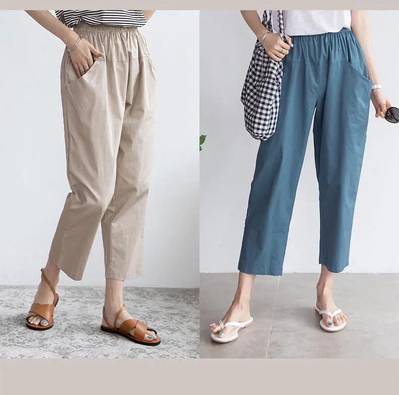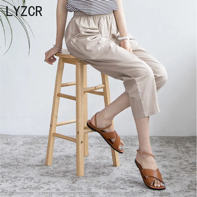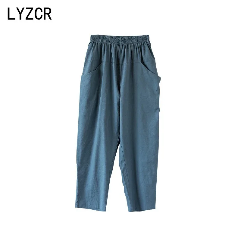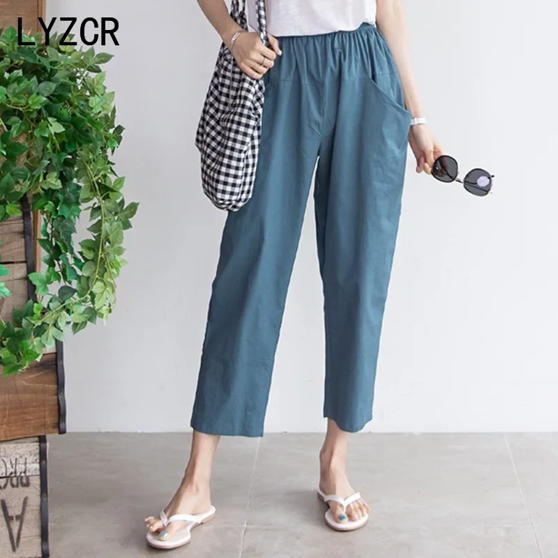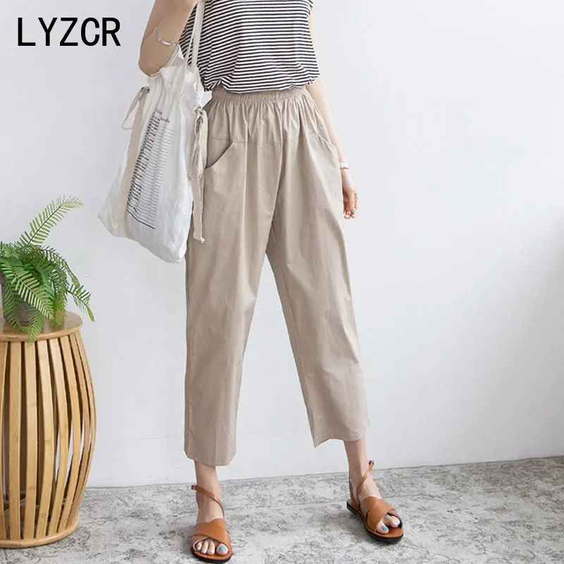 LYZCR летние женские хлопковые брюки свободные белые шаровары для женщин Высокая талия линия женские брюки до щиколотки