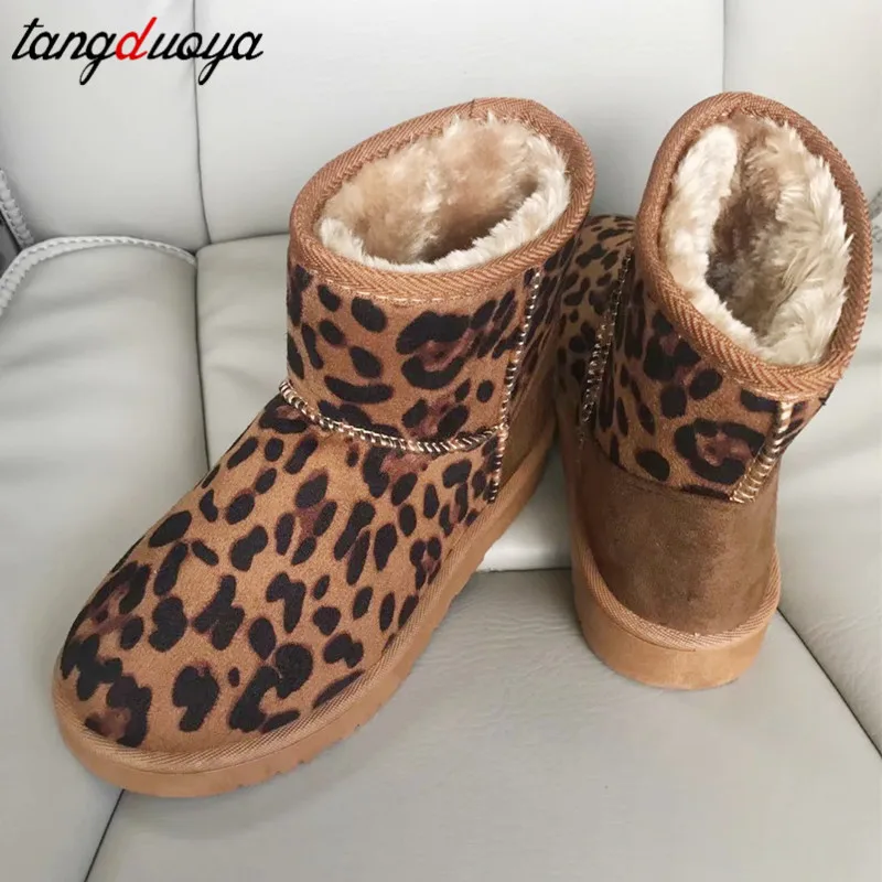 Женские зимние ботинки в австралийском стиле; Зимние Теплые ботильоны для женщин; Зимние ботинки с леопардовым принтом без застежки; Женская плюшевая обувь; Большие размеры