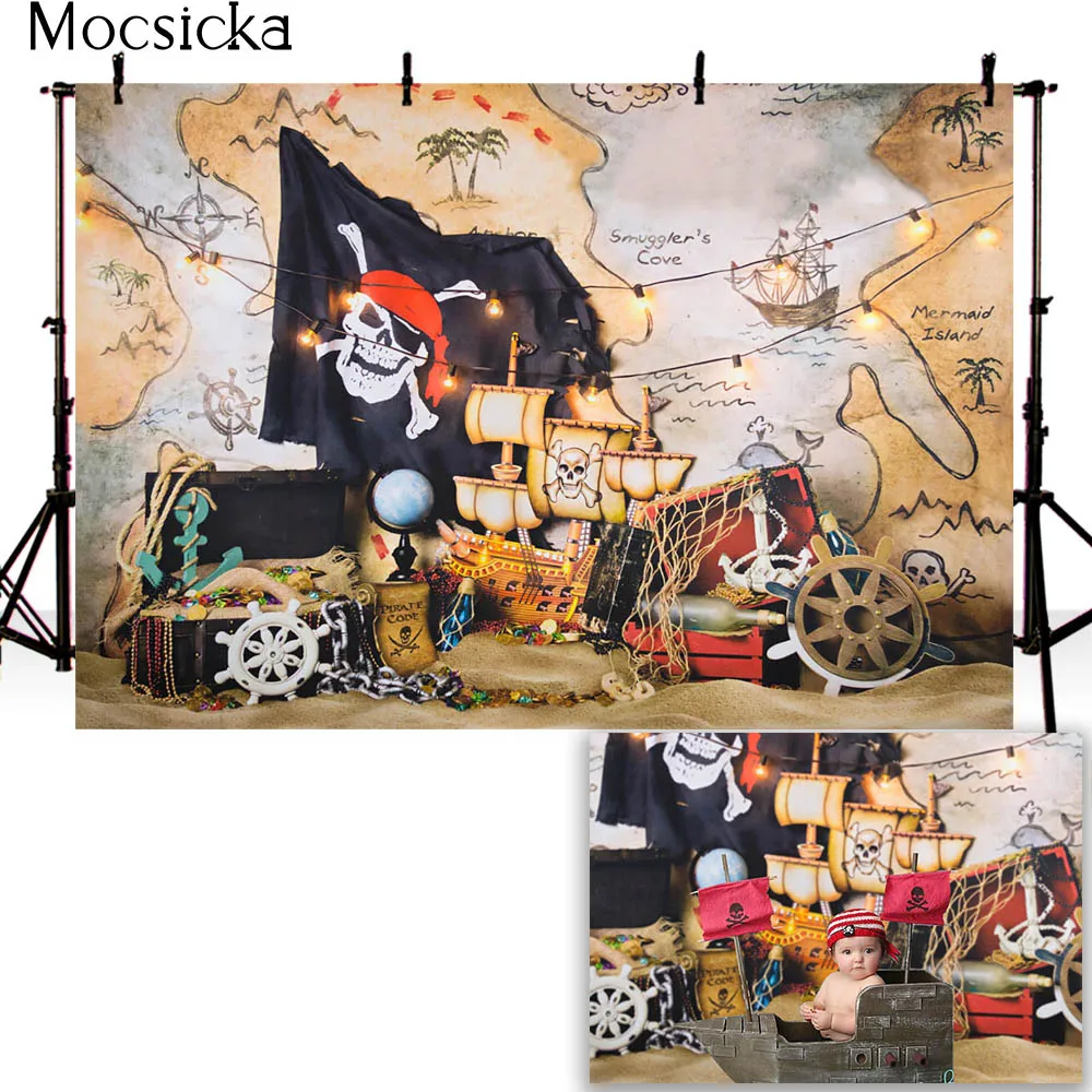 Пиратские приключения на день рождения детский торт для новорожденных разбивает 1-е Звездное море карта Кладоискатель Золотой Декор