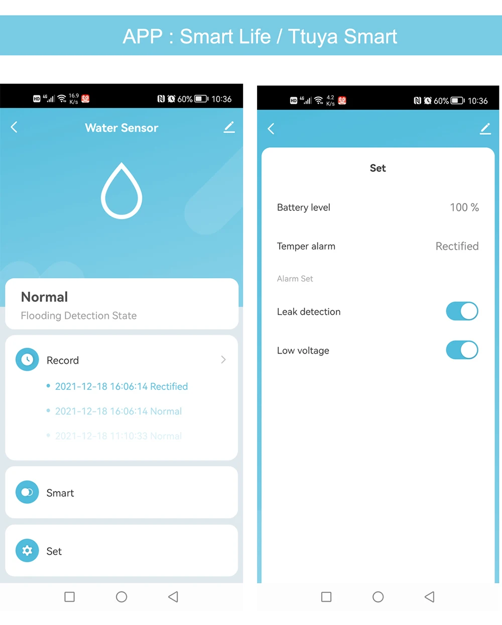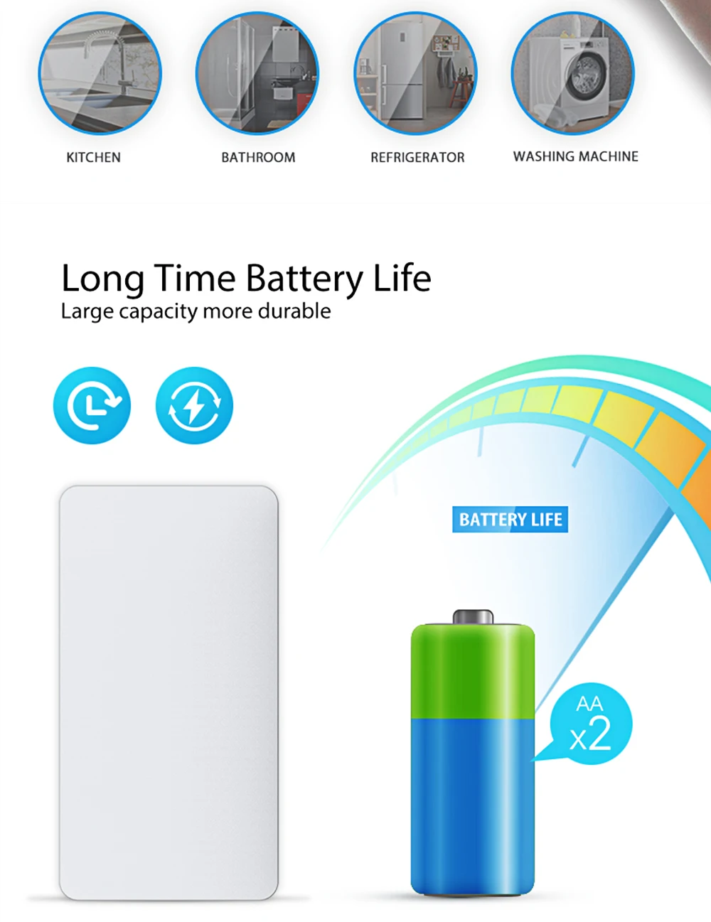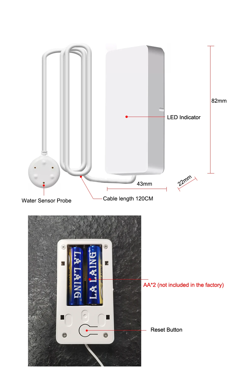 Название: домашняя сигнализация Tuya, Сигнализация утечки воды, независимый Wi-Fi датчик утечки воды, детектор наводнения, система охранной сигнализации, без ступицыБатарея: LR03-1.5V/AAA * 2 (батарейки не входят в комплект)Беспроводной Тип: 2,4 ГГц IEEE 802.11b/g/nРабочая температура: 0 ℃ ~ 40 ℃ (32 ℉ ~ 104 ℉)Рабочая влажность: 20% ~ 85% относительной влажностиВлажность хранения: 0% ~ 90% относительной влажностиПриложение: Tuya smart (поддерживает Android 4,4 и iOS 8,0 или более новый)Материал: АБС-пластик Особенности продукта: 1. Вода poof, обнаружение утечки водыДатчик может определить, есть ли утечка воды в месте установки. Если это обнаружится, информация будет немедленно передвинута на телефон. 2. Легко установитьУстановка датчика очень проста, вы можете использовать клей краны или винт (в комплекте) Набор для установки в месте, которое вам нужно установить, обратите внимание, что место установки может быть подключено к Wi-Fi роутеру .. 3. Используйте Wi-Fi, не требуется концентраторДатчик использует Wifi для передачи данных с сервера. Пока есть Wi-Fi сеть, подключенная к Интернету дома, она может соответствовать условиям установки. 4. Удаленный мониторингИнформация о сигнале тревоги и записи датчиков хранятся на сервере. Этот дизайн позволяет нам контролировать, есть ли вода в доме или офисе из любого места через смартфон. И также может поделиться контрольной информацией устройства с другими. 5. Низкое потребление батареиПотребляемая мощность датчика в режиме ожидания очень мала, и две батареи LR03 AAA используется для одного года. И когда обнаружится, что батарея низкая, она напомнит вам заменить батарею через сообщение тревоги.