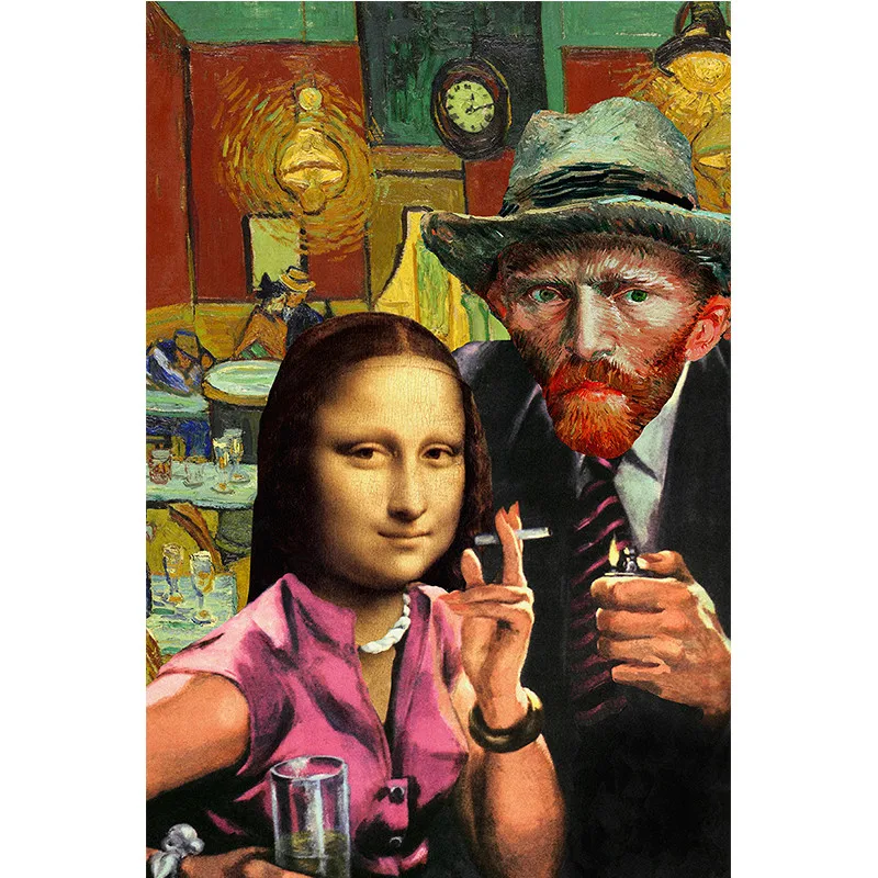 Забавное искусство Мона Лиза и Ван Гог курение холст картины стены ...