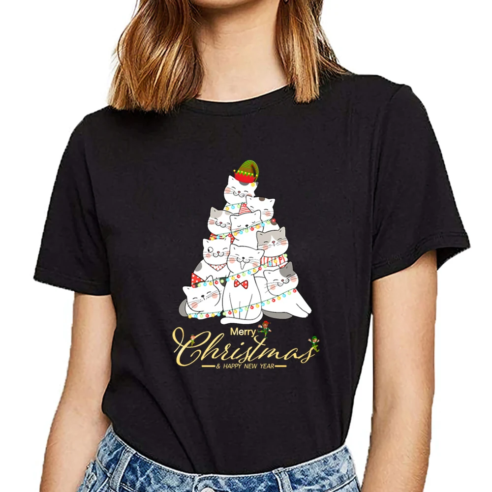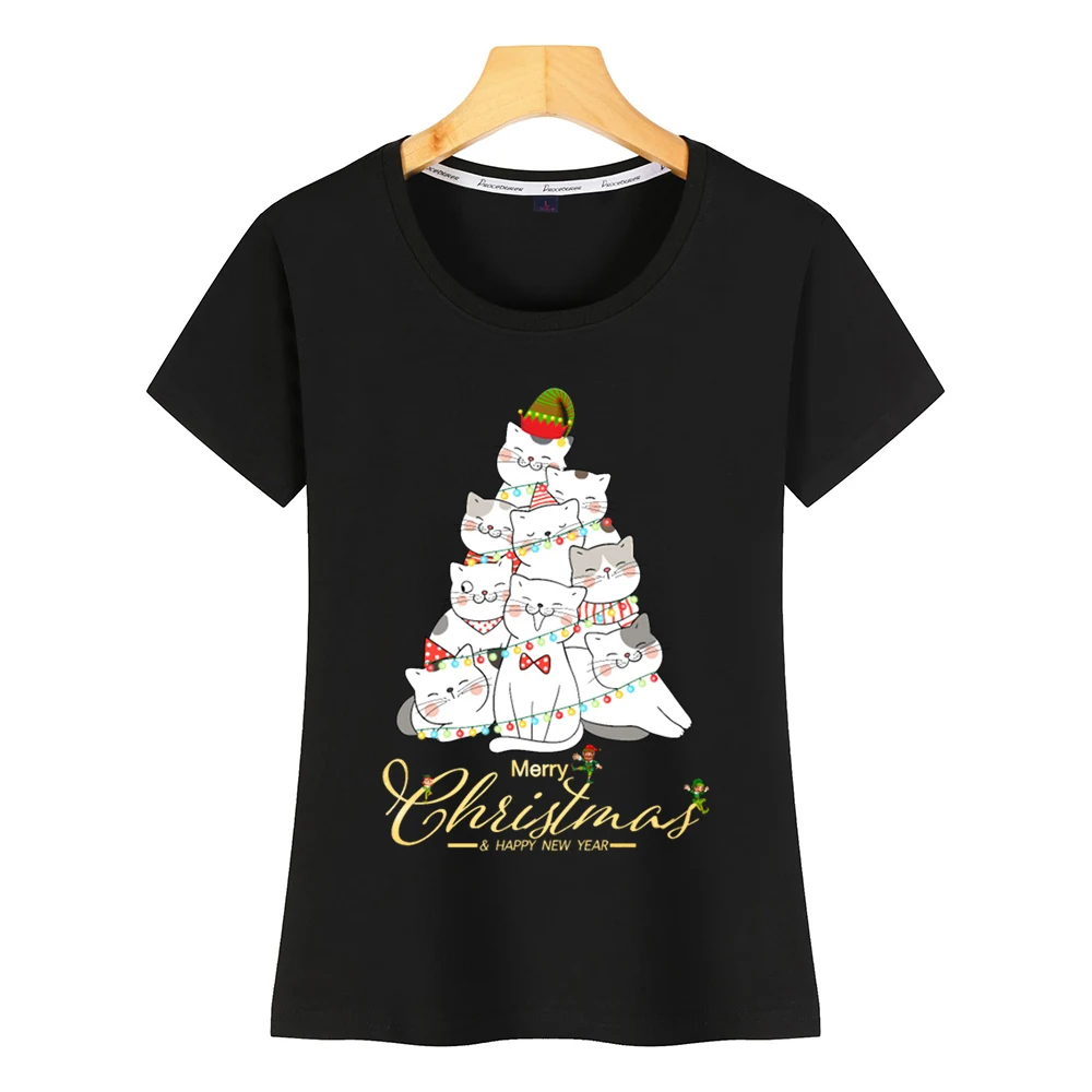 Топы, футболки для женщин, базовая черная короткая женская футболка с рисунком енота, большие размеры, модная Рождественская футболка с рисунком кота harajuku, 2021