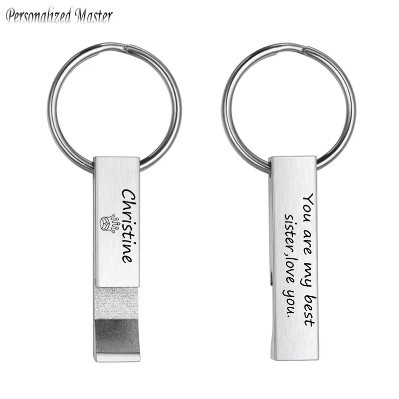 Персонализированные мастер по индивидуальному заказу открывалка для бутылок, брелки для ключей, текст гравировки брелок с кольцом-держателем брелок-открывалка для пива Fathers Day Gift