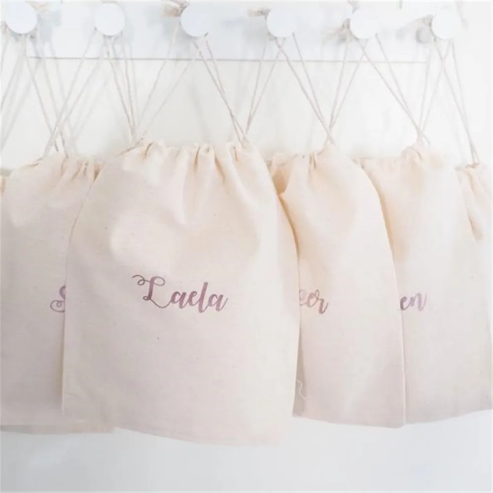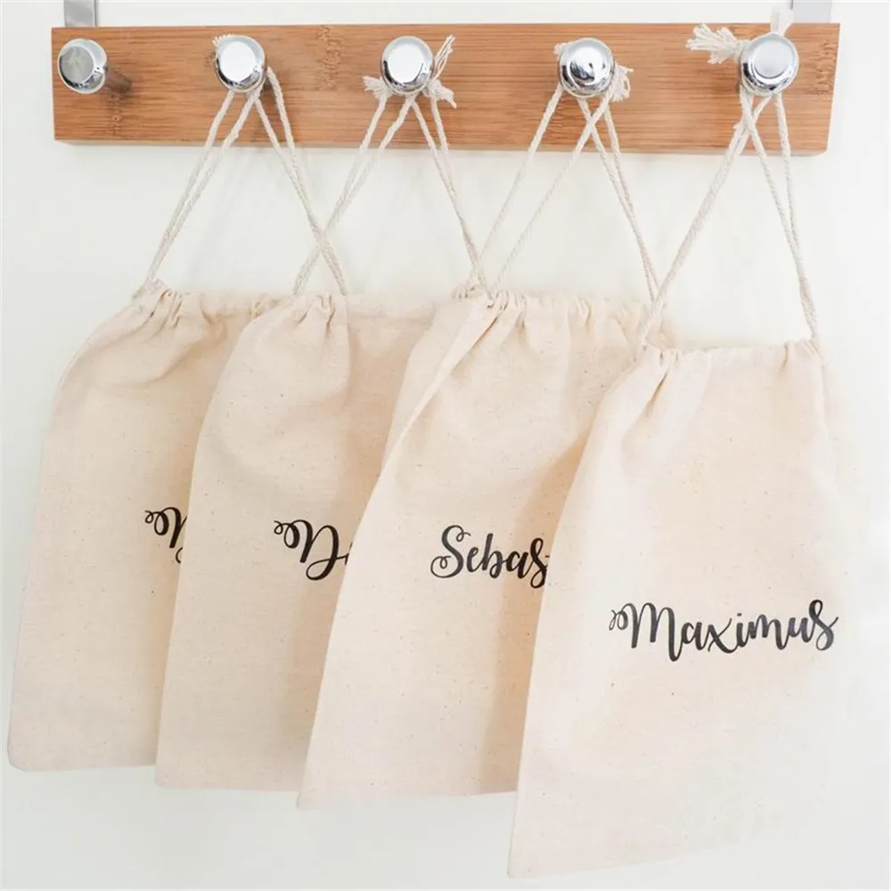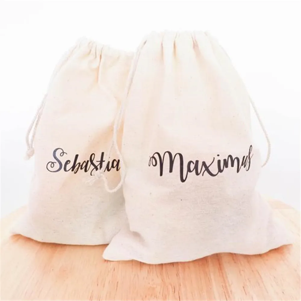 Персонализированные сумочки с рисунком шрифтов, хлопковые сумочки на шнурке, подарочные сумки под заказ-свадьбы, Детские праздники