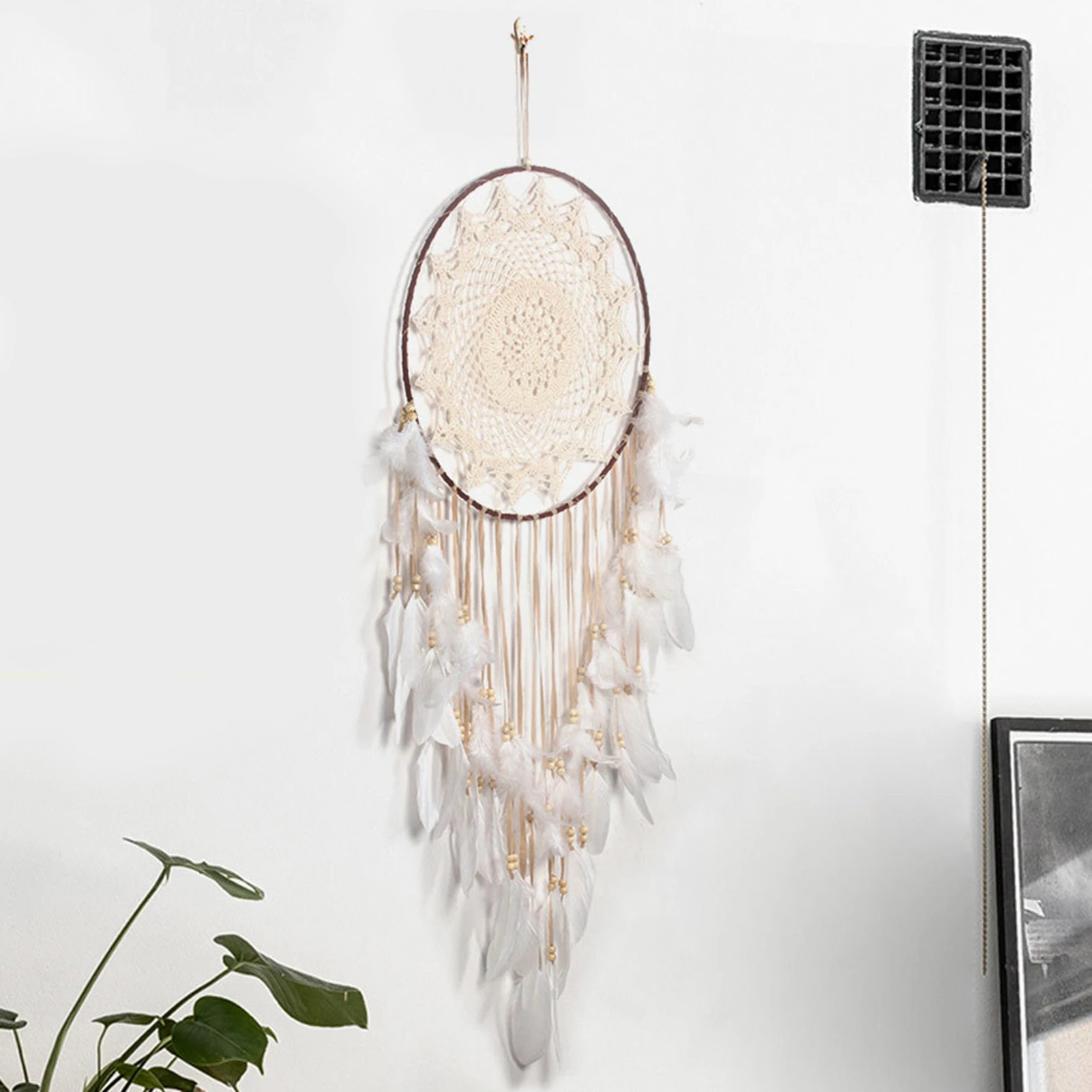 Кольцо "Ловец снов" с перьями 40 см, кружевное настенное висящий мечтатель, украшение для спальни, свадьбы