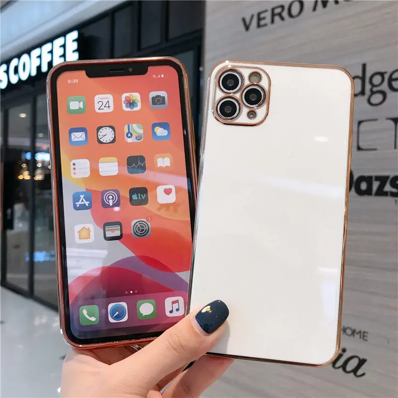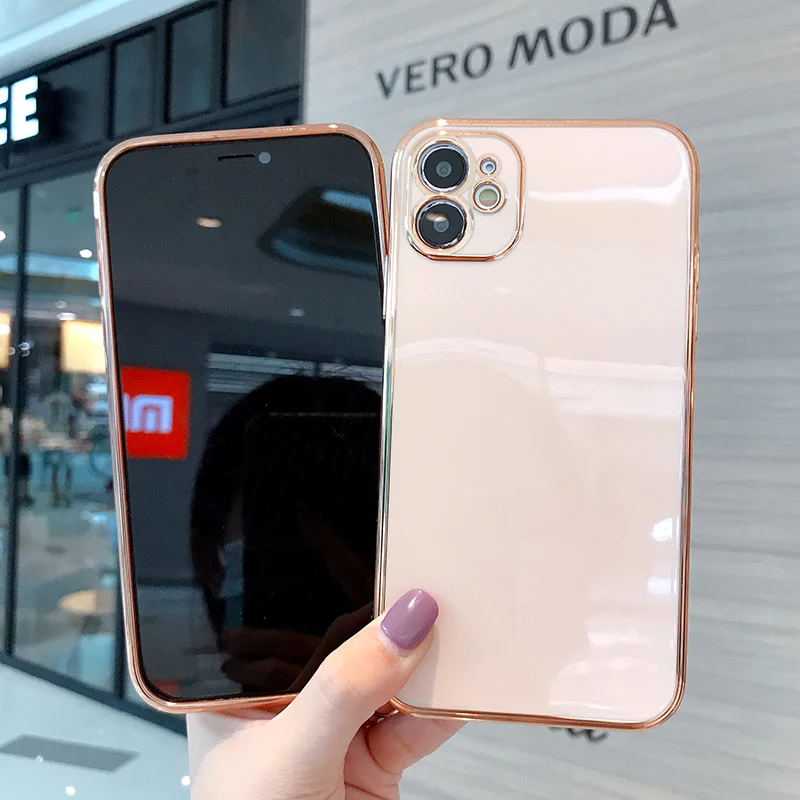 Позолоченный квадратный глянцевый чехол для телефона iPhone 12 11 1...