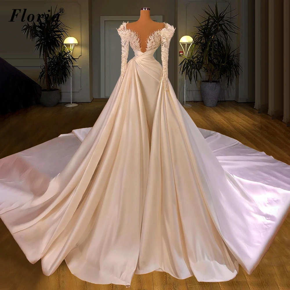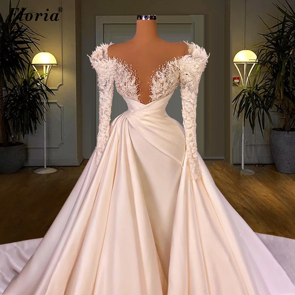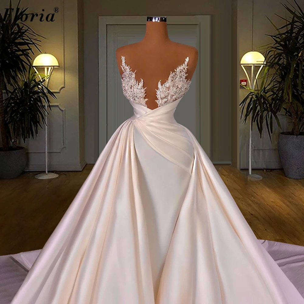 Женское свадебное платье с жемчугом, со съемным шлейфом и глубоким ...