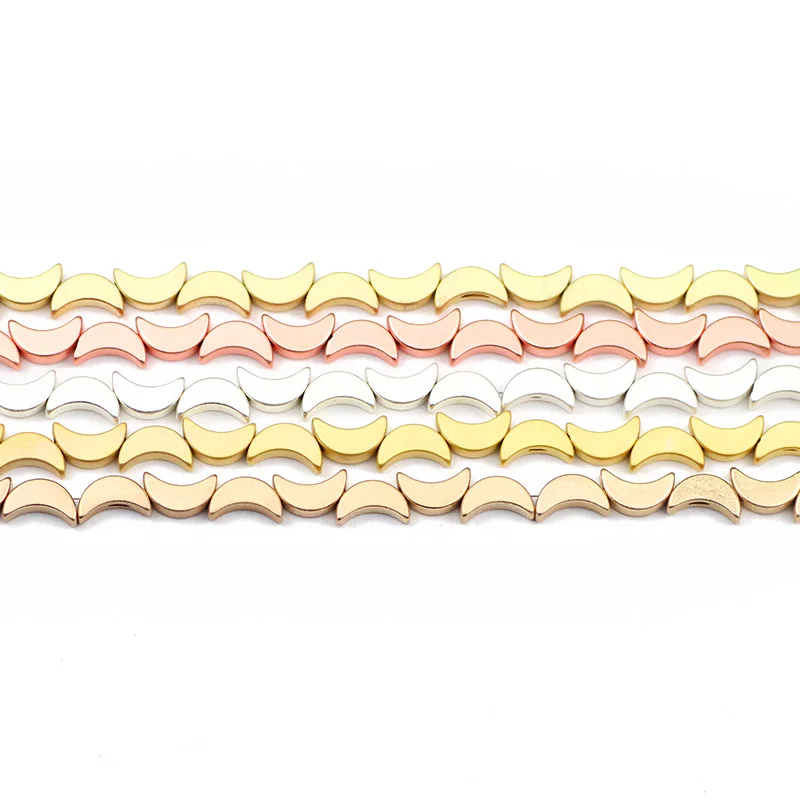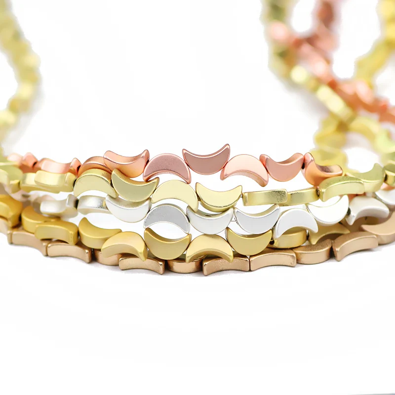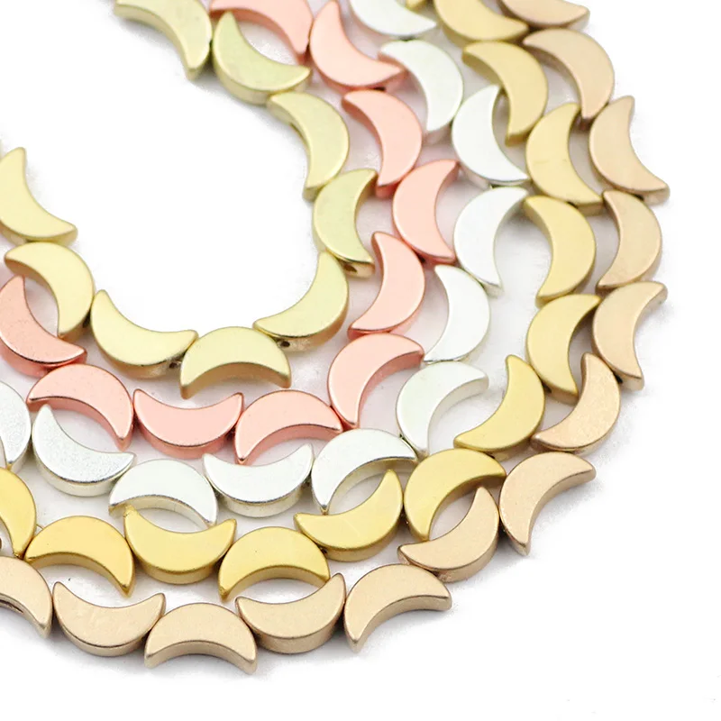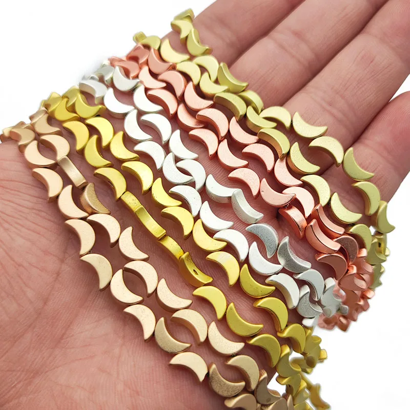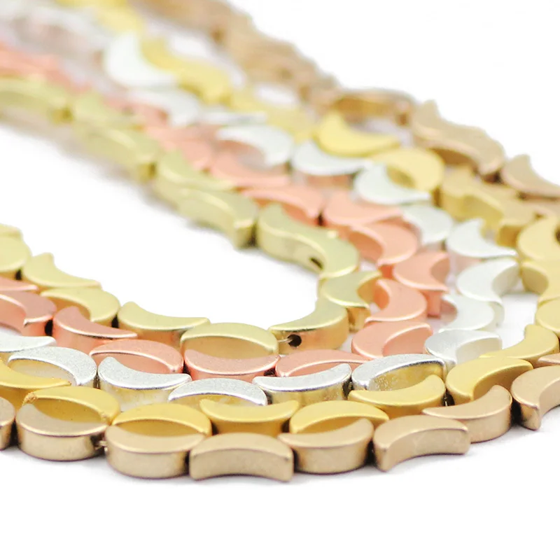 Матовые бусины в форме Луны, золотого и серебряного цветов, 8 мм, гематит, натуральный камень, свободные бусины для изготовления ювелирных изделий, Diy Браслеты, ожерелье, аксессуары, фурнитура Длина нити: 15 Дюймов 8x5 мм: 50 шт/прядь, отверстие: 1 мм