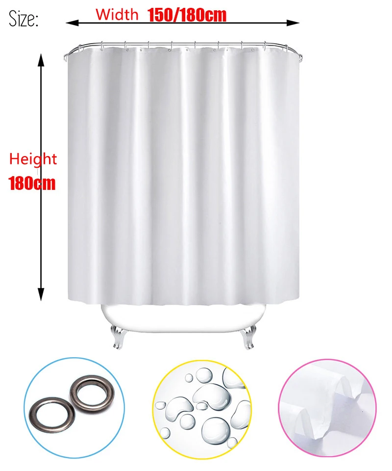 Материал: 100% полиэфирное волокно Цвет: как на фото Размер: W90xh180см W120xh180 см W150xh180 см W180xh180 см W200xh180 см 1 см ≈ 0,393 дюйма Посылка: 1 шт. тканевая занавеска для душа Цена указана за 1 шт. тканевой занавески для душа
