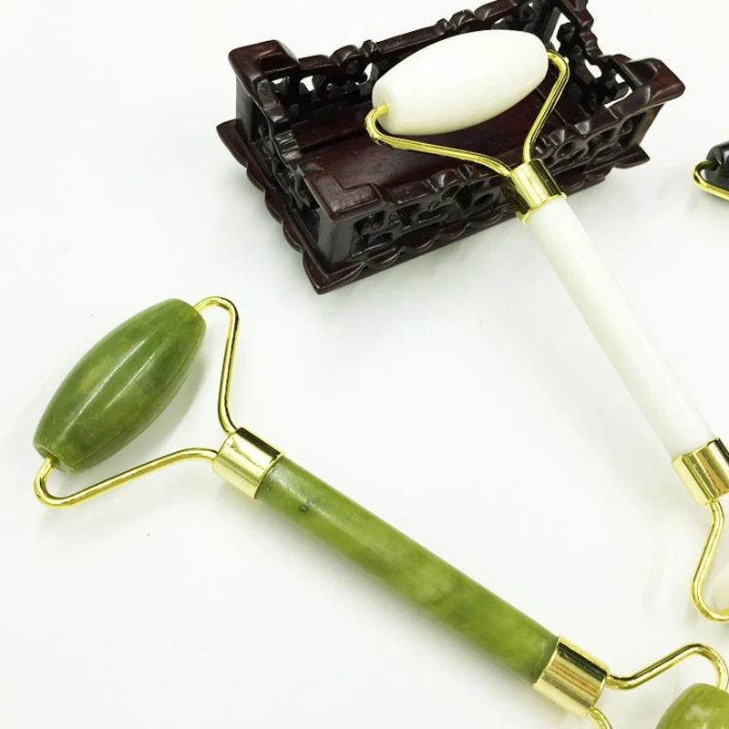 Нефритовый массажный ролик, черно-белый массажер для лица, глаз, лица, шеи, скребок Guasha, инструмент для тонкого лифтинга и похудения, инструмент для ухода за кожей лица