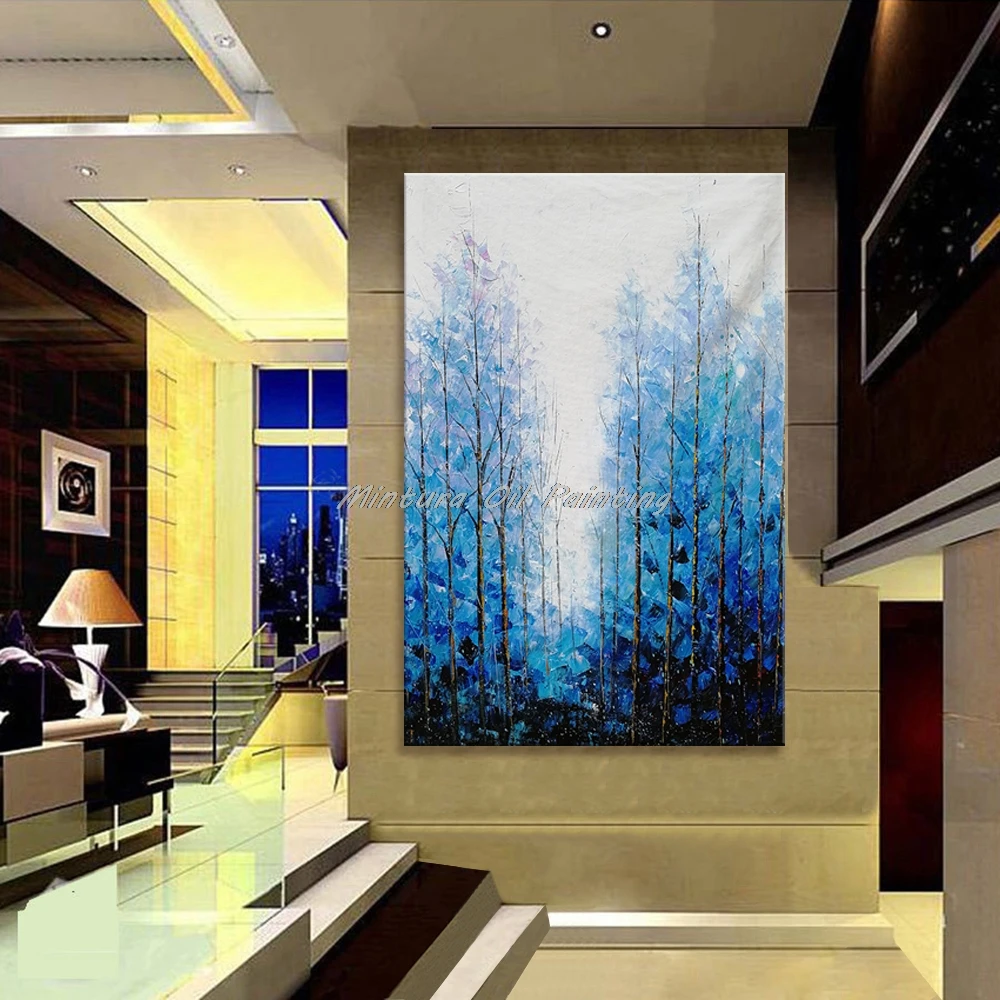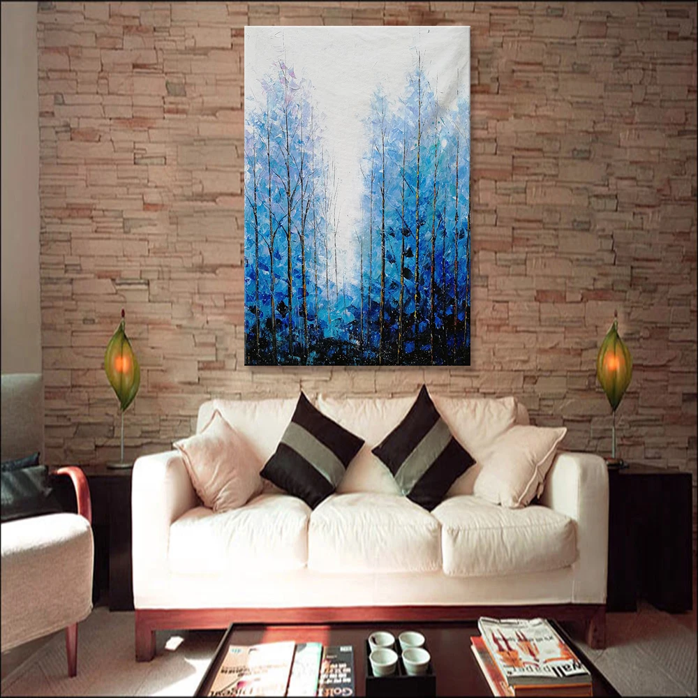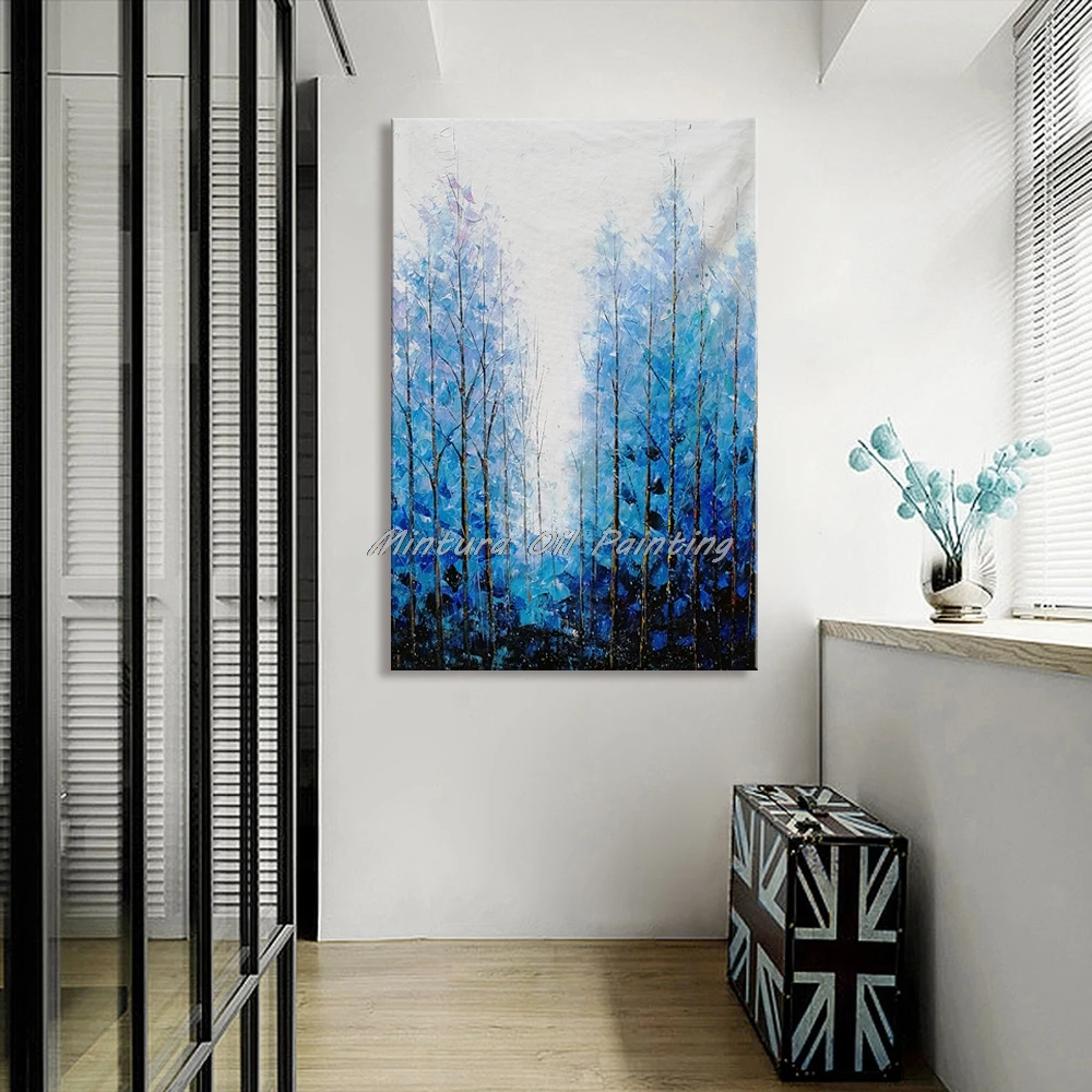 Картина на стену Mintura для гостиной, Масляные картины на канве, ручная роспись, синий лес, домашний декор, декор для отеля, настенная живопись, без рамки.