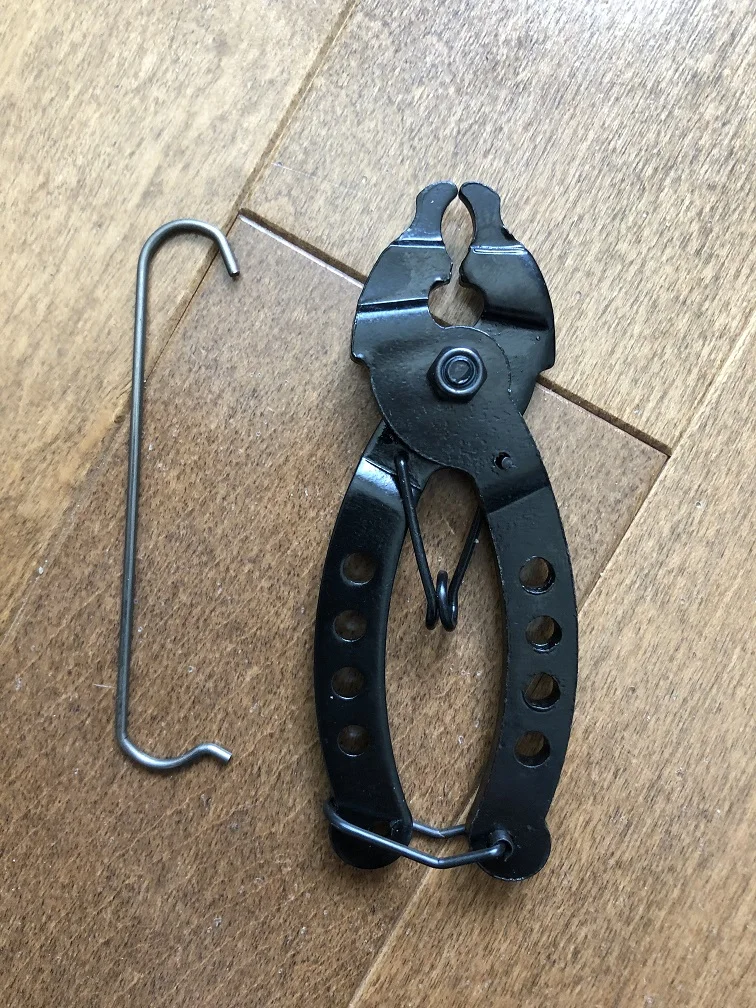 Плоскогубцы маленькие, но делают свою работу. Чтобы поставить ссылку быстро, Мы кладем кончики и затягиваем нижнюю часть плоскогубцев внутрь. Чтобы освободить быструю ссылку, мы делаем заднюю часть, мы Надеваем кончики и разделяем плоскогубцы снизу. Важно иметь провод, который поставляется с установленными плоскогубцами и выключенной цепью, так как таким образом мы выполняем обе функции с минимальным давлением.