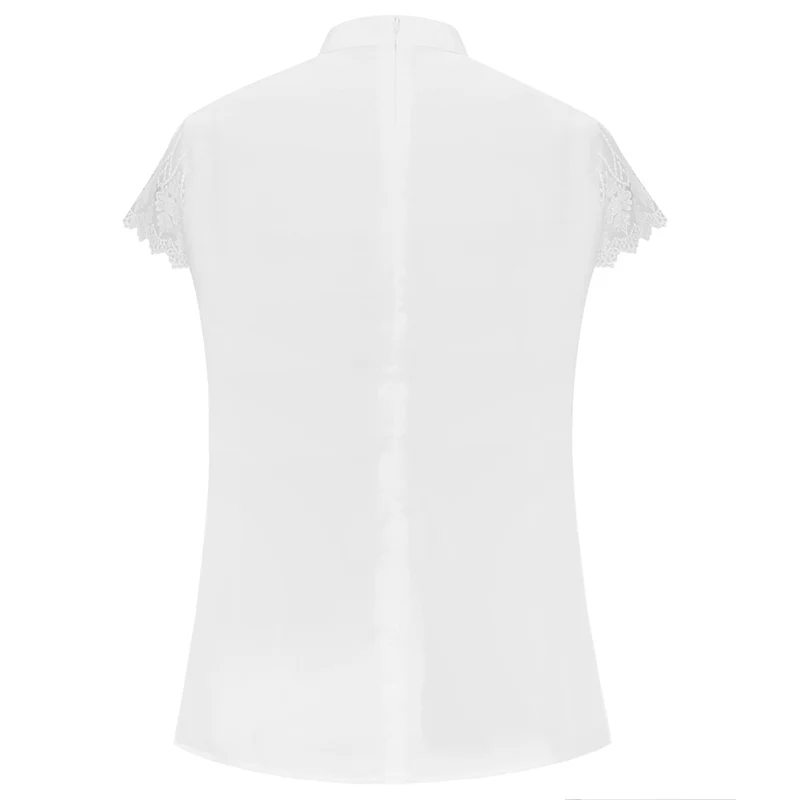 Женская шифоновая блузка, с воротником-стойкой, кружевная, летняя, элегантные с коротким рукавом