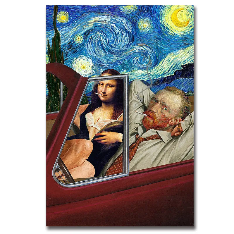 Картина на холсте Ван Гога и Мона Лиза, смешное искусство вождения,...