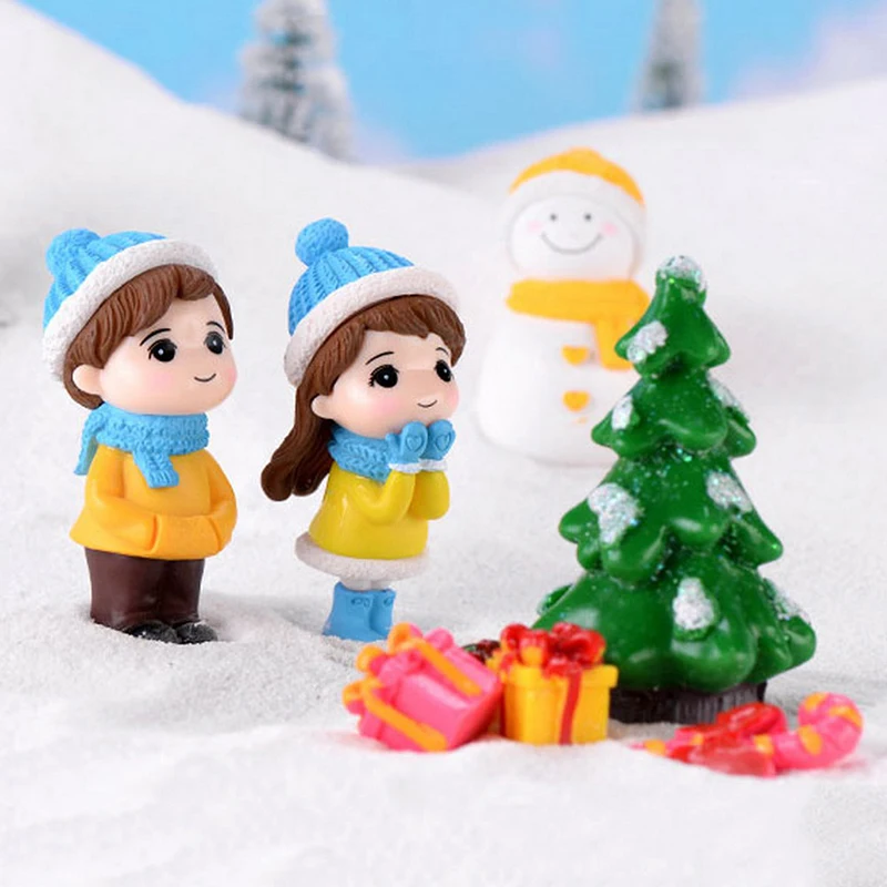 Миниатюрная статуя снеговика для пары, садовый миниатюрный Ландшафтный декор, Рождественская снеговик для пар