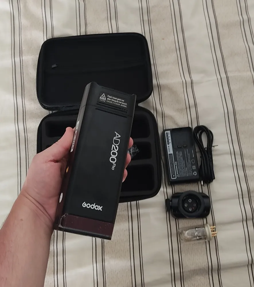 Ну что можно сказать, одна из лучших вспышек для мобильной студии и уличных съёмок. Год назад купил две таких, сейчас прикупил третью, теперь в принципе могу решить любую задачу. В сдвоенном адаптере даже солнышко забивает. Время перезарядки очень маленькое, sb900 в серийке не успевает за ними, поэтому заказал V1N - жду. Также заказал круглую башку, Третий провод удлинитель-офигенная вещь. Третий чехол для AD200pro уже был, покупал сразу три, знал что буду ещё одну пыху брать, год назад финансы не позволили. Заказывайте сразу защиту на голую лампу, тогда можно лампу из башки не вытаскивать каждый раз От души рекомендую, доставка в Томск из России за неделю. Таможни нет. Если из Китая, то штука с лишним налогов прилетит. Продавец адекватный, приятно общаться.