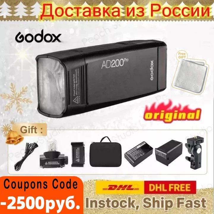 Карманная вспышка Godox AD200Pro TTL, для Canon, Nikon, DSLR, аксессуары для фотостудий, youtube, прямая трансляция