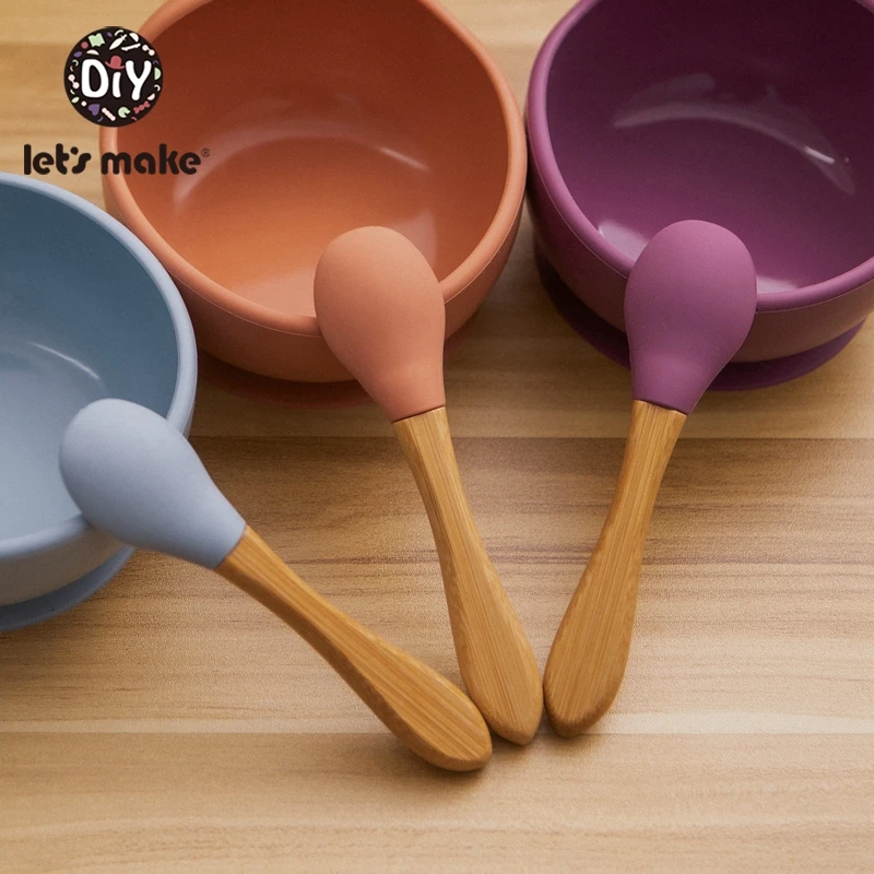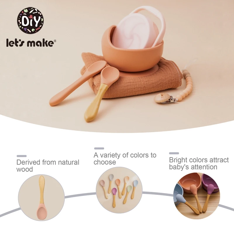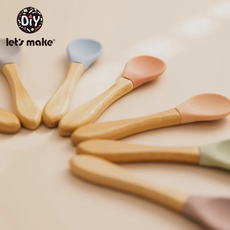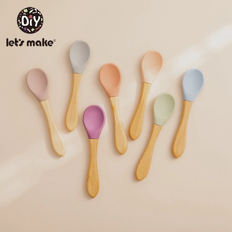 От компании Let's Make набор детской посуды силиконовая ложка для детей Бесплатная BPA Еда Класс детские товары безопасно аксессуары для кормления ложка