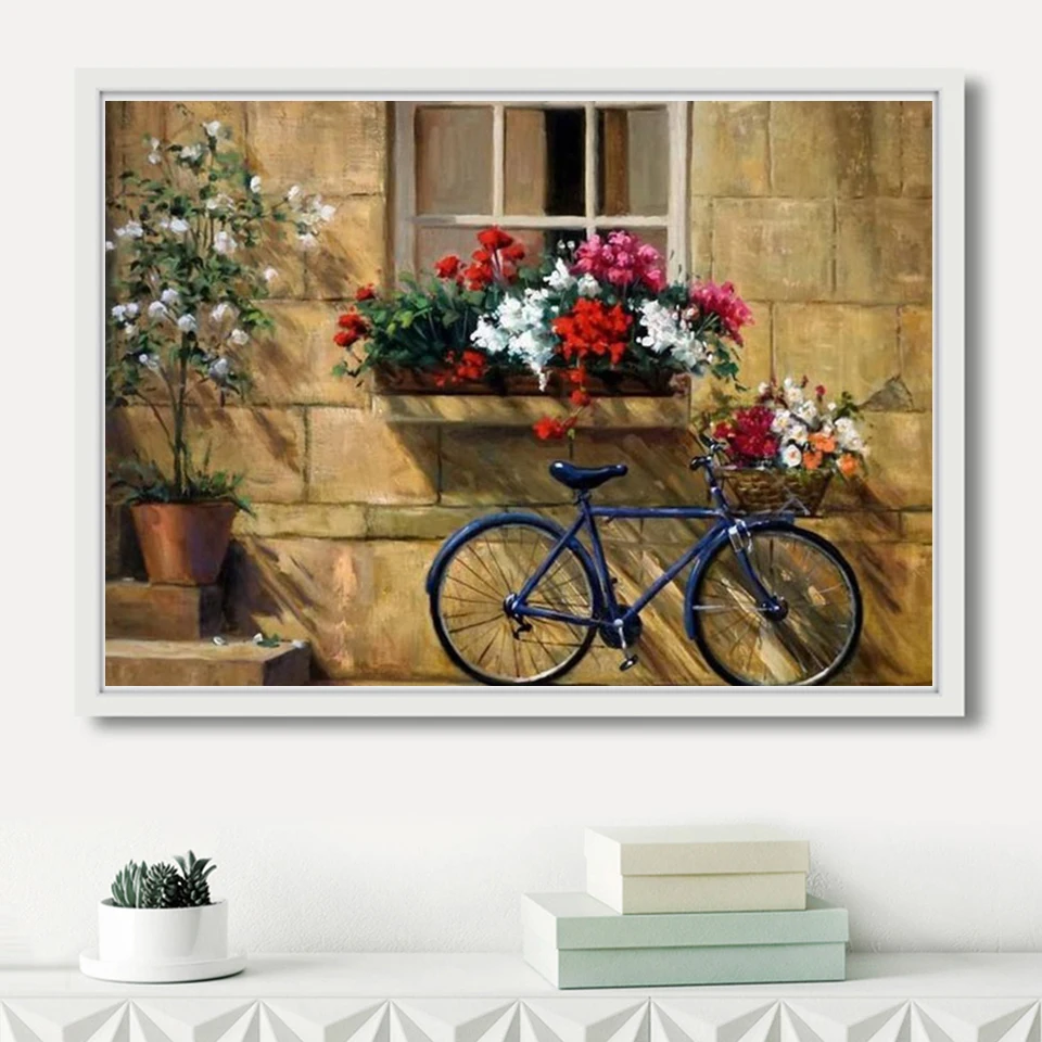 Алмазная 5D картина сделай сам, Набор для вышивки крестиком с изображением пейзажа, цветов, велосипеда, мозаика для вышивки крестиком, декор Стразы