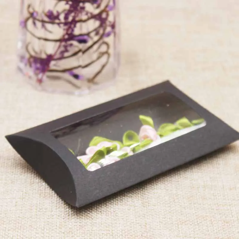 50 шт. коробка из крафт-бумаги Подушка Коробка для конфет из ПВХ DIY благосклонности венчания коробки подарка с ясным окном, детские подарки на день рождения вечерние украшения