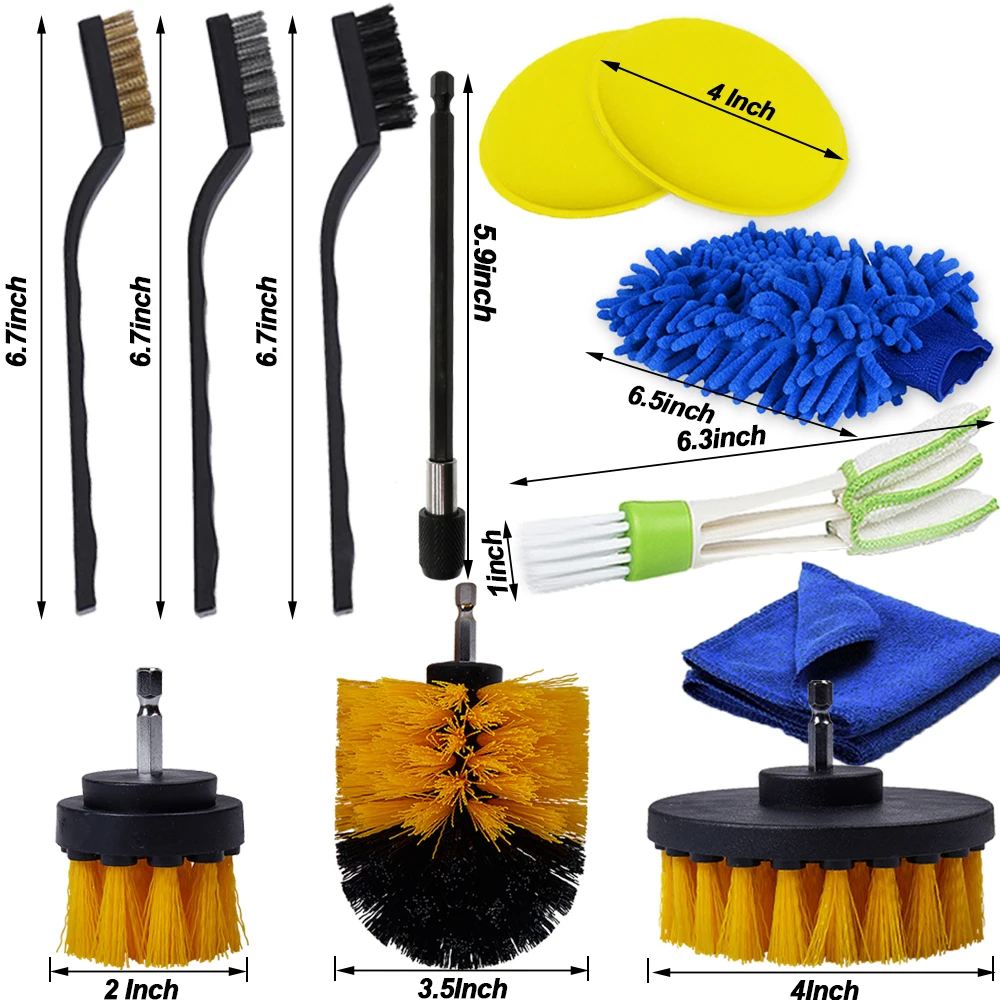 Спецификация:• Состояние на 100% абсолютно новый и высокое качество• Тип: щетки для чистки автомобиля• Материал: ПП, губка• Размер:Длина кисти: 20/22.5/23/23/23 смРазмер сверл: 2/3.5/4 дюймаПолотенце: 30*30 см• Количество: 3 шт./5 шт./9 шт./12 шт./13 шт./17 шт.