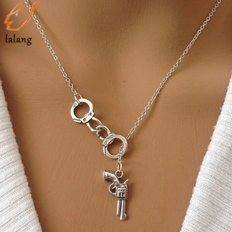 1 шт. ожерелье с наручниками и пистолетом, ожерелье с пятидесяти оттенками серого кулона, Модные Цепочки для влюбленных, ожерелья, звеньевая цепь 369665