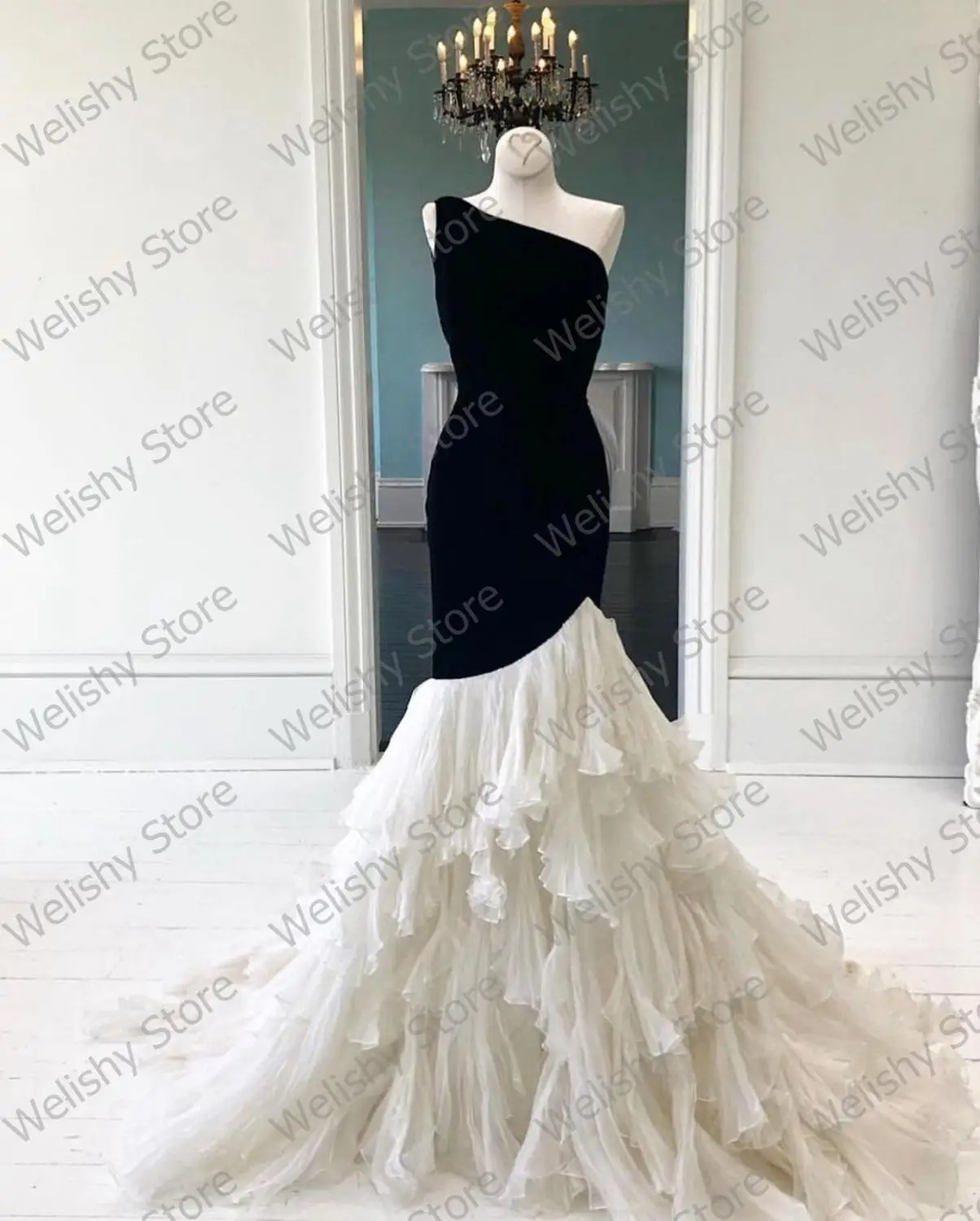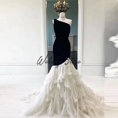 Женское вечернее платье-русалка без рукавов, элегантное черное платье с одним открытым плечом, белое Тюлевое платье с оборками, длинное платье для выпускного вечера