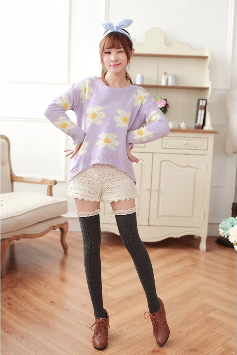 Чулки женские кружевные хлопковые, теплые Гольфы выше колена, пикан...