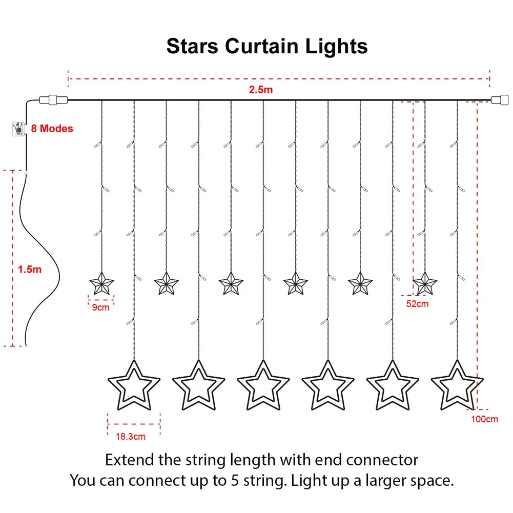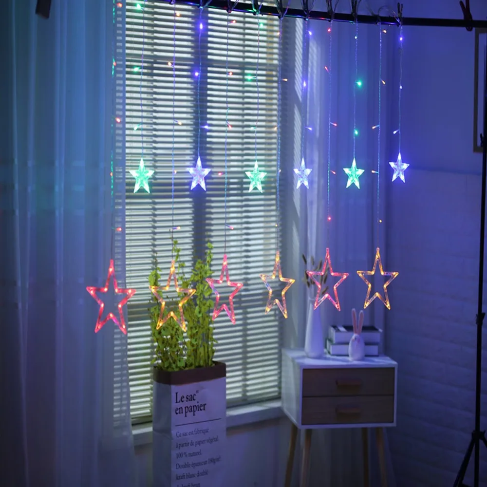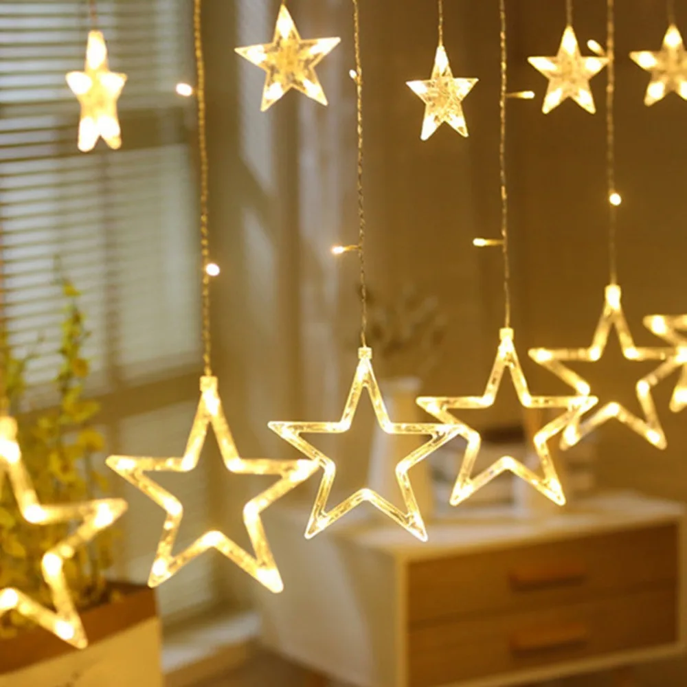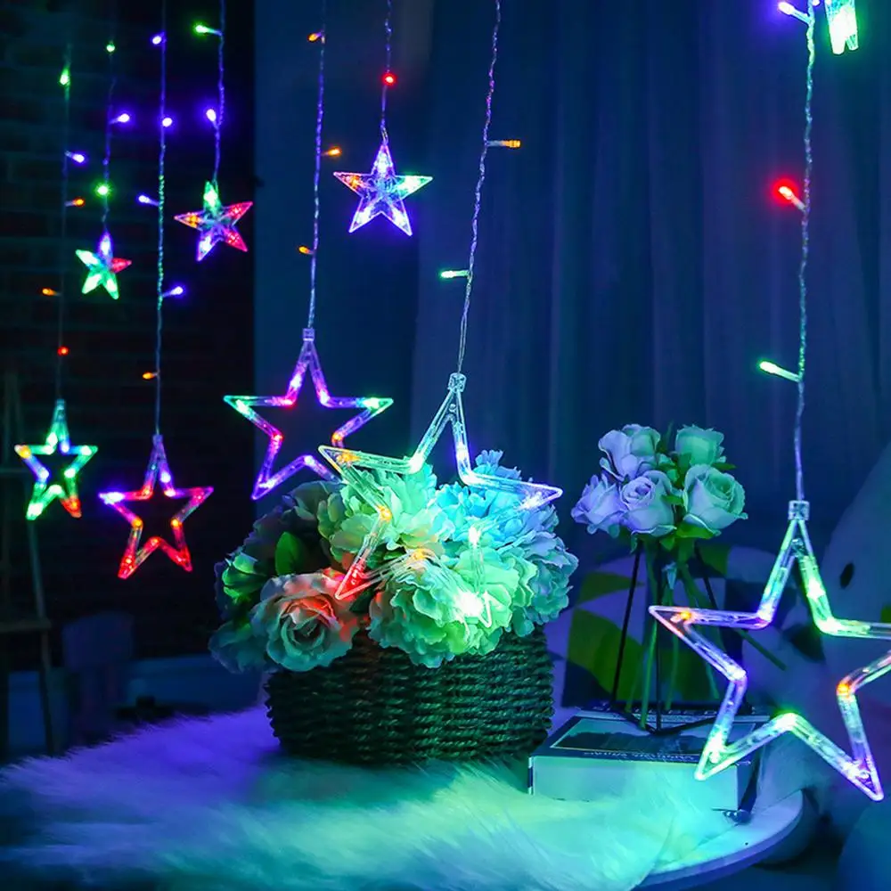Высокая яркость 12 звезд 126 светодиодов, но не ослепительно, создает романтическую атмосферу. 12 струнных ламп в общей сложности, широко распространенный источник освещения.