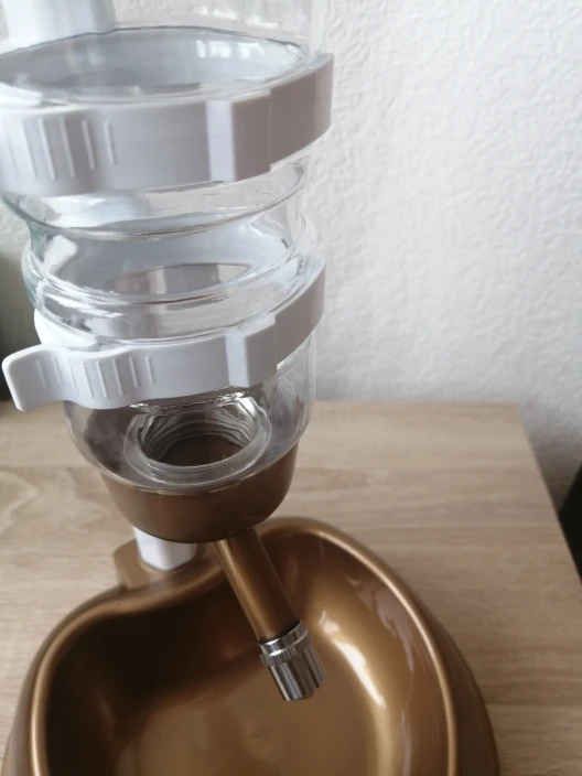 У поилки есть маленький недостаток - это отсутствие возможности доливать воду сверху, это неудобно. Думаем проделать дырку. Собаки довольны.