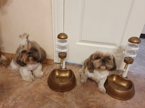 Отличная поилка для ши тцу. Вода не капает. Борода сухая.