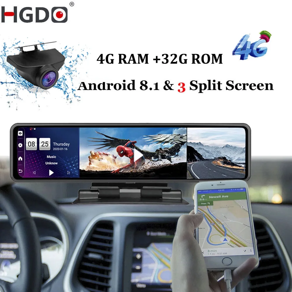 Видеорегистратор HGDO, 12 дюймов, 4G, Android 8,1, 4G + 32 гада, 1080P, WiFi, GPS