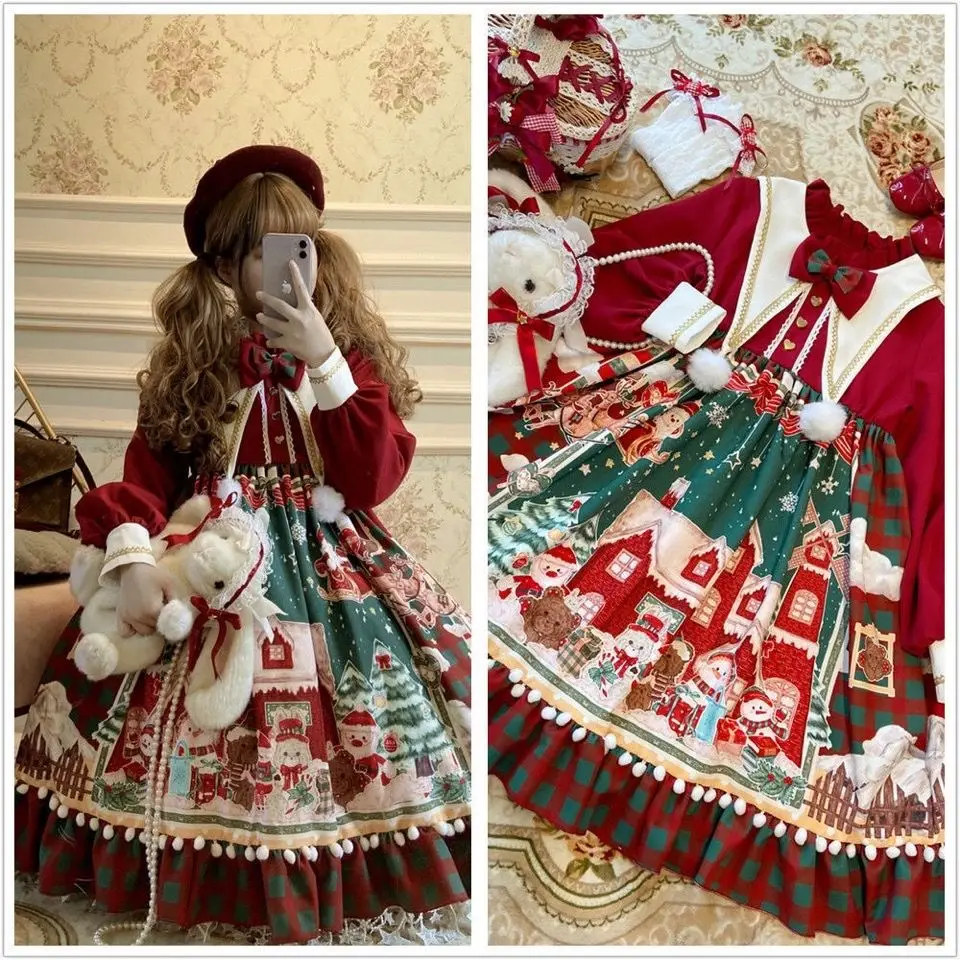 Викторианский средневековый Рождественский Лолита Новый год в готическом стиле, платье в стиле лолита с милым принтом Винтаж на каждый день в стиле ретро; В стиле лолита Чай вечерние милое платье