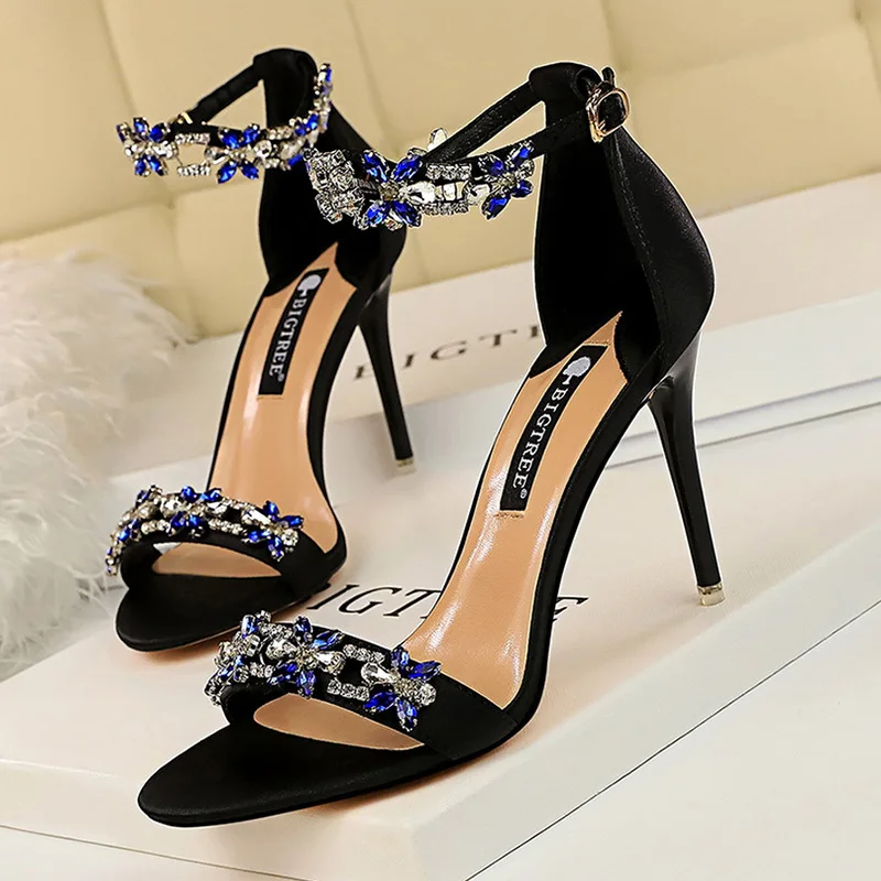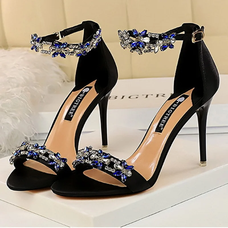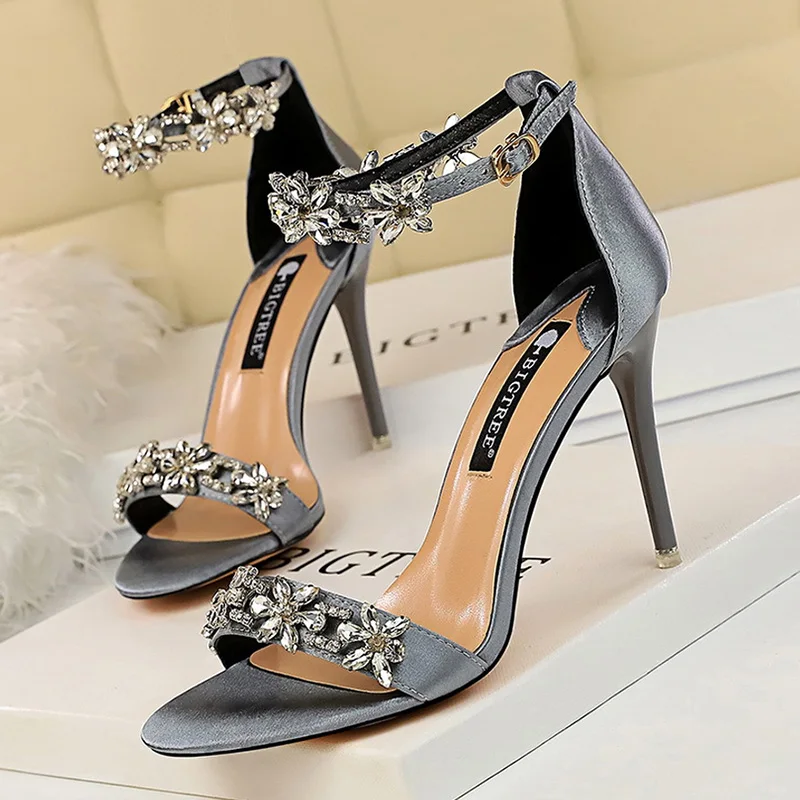 Туфли женские свадебные на высоком каблуке, со стразами