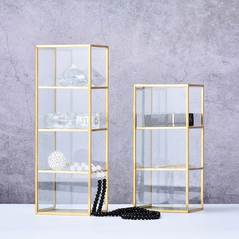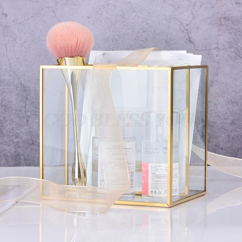 Держатель для кистей для макияжа, золотистый контейнер для хранения, прозрачный стеклянный декоративный пенал для карандашей и сережек