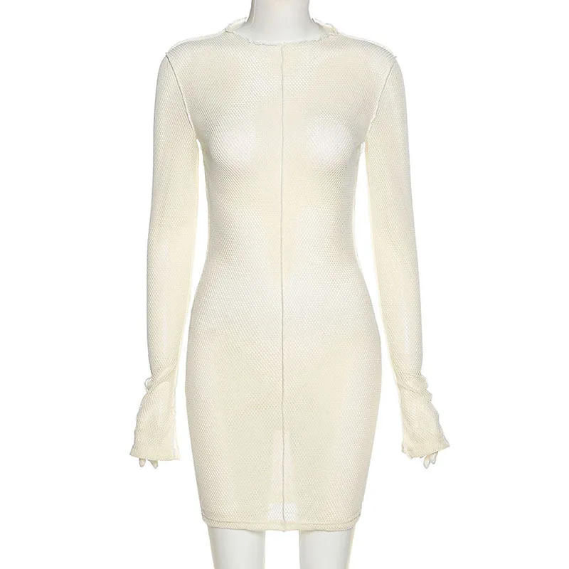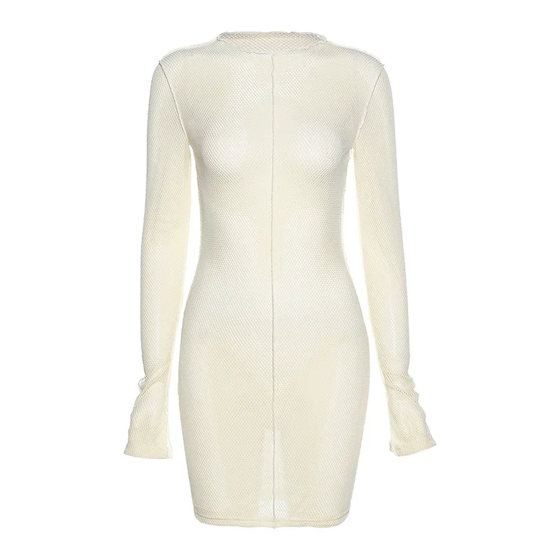 Женское Прозрачное мини-платье Julissa Mo, Сетчатое вечернее платье с длинным рукавом Вечерние круглым вырезом, Клубная одежда, белое платье на весну 2021