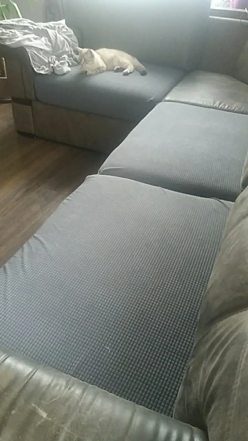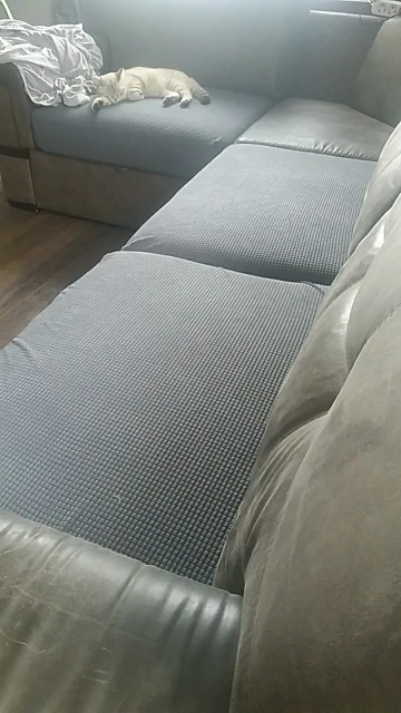 Прекрасные чехлы, на угловой диван подошли идеально, воду не пропускают, кошачья шерсть даже не сильно прилипает, к телу приятно. Доставка в срок Спасибо продавцу