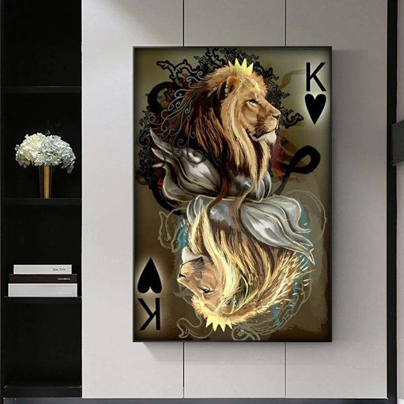Плакаты, настенные картины, домашний декор, Лев, покер, холст, принты, Минималистичная картина, принт животных, плакат, декоративная картина на холсте