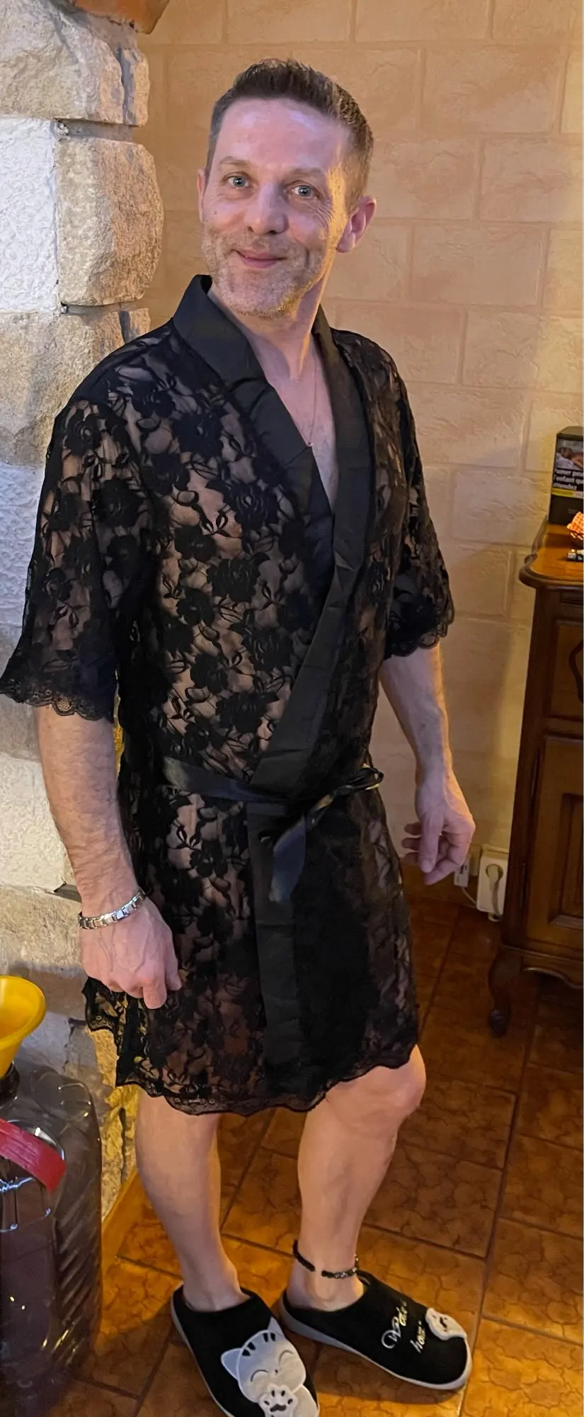 Халат мужской кружевной, с Т-образной спинкой