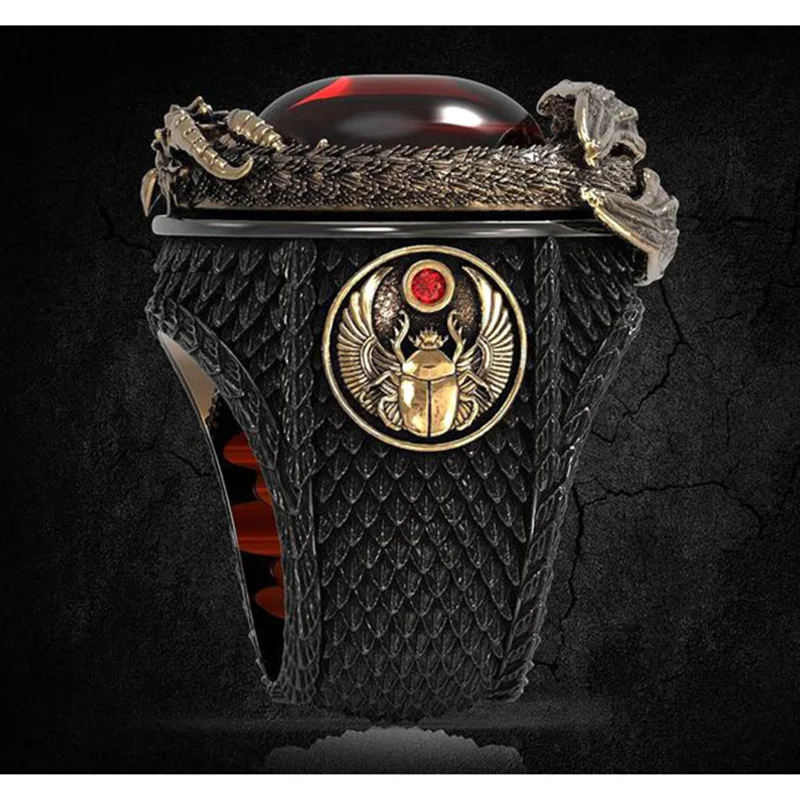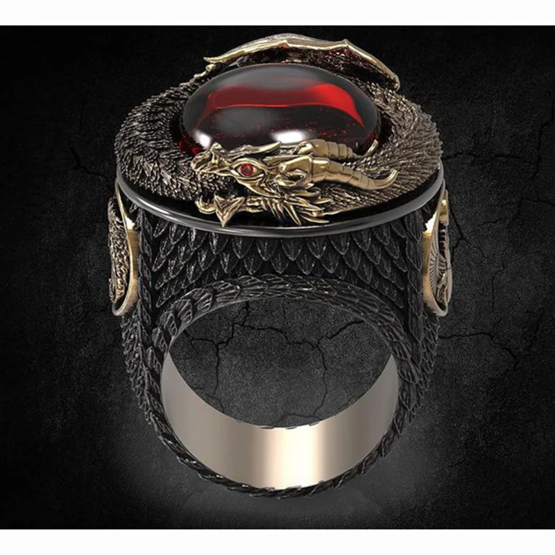 Кольцо SECRET BOY мужское золотистое с кристаллами, классическое модное вечернее Ювелирное Украшение в стиле панк, с красным кристаллом, хороший подарок