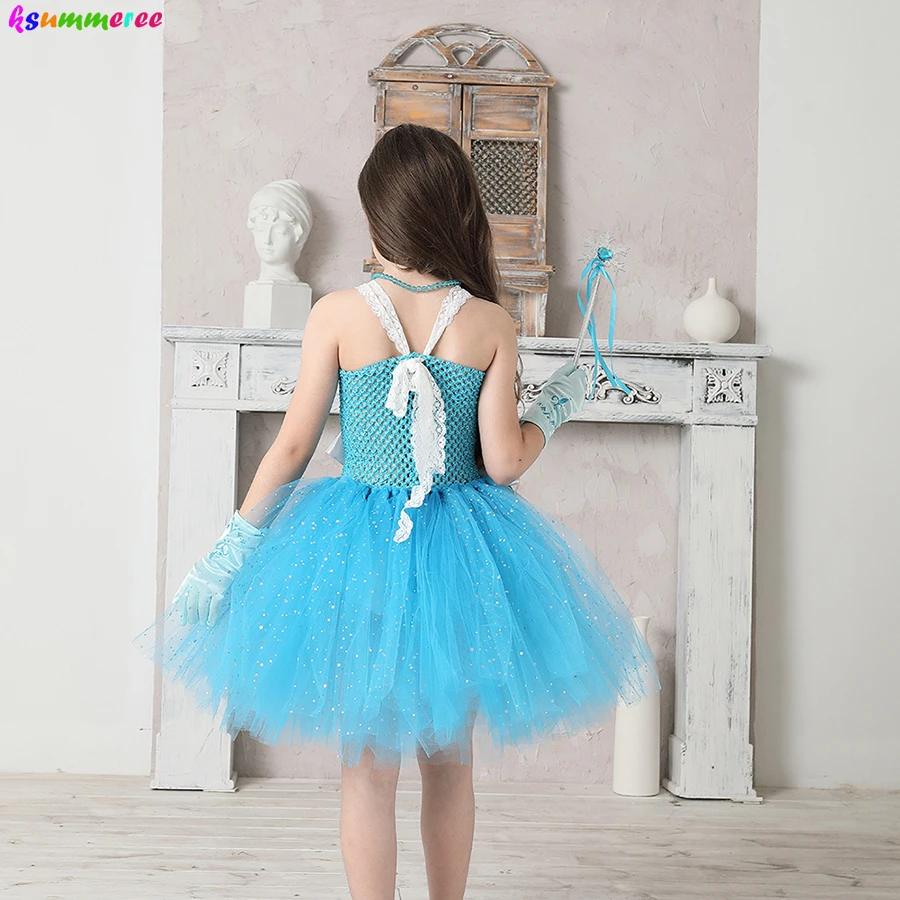 Характеристика 1: Это платье-пачка ледяной королевы украшено блестящим синим украшением спереди со снежинками и 2 белыми бантами на талии, чтобы закончить платье.