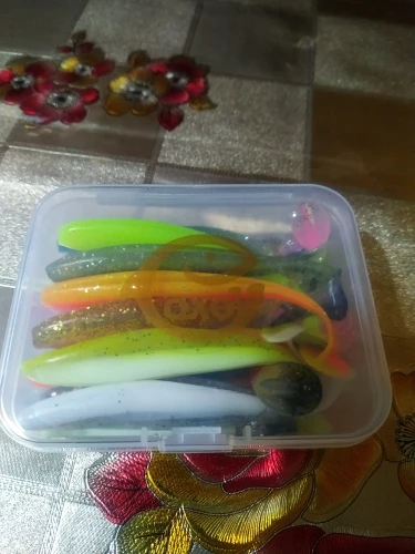 в Новосибирск за 25 дней. доставка сдэк. в коробочке 20 силикошек длиной 9.6 см и весом 4.11 гр каждая. всего 10 расцветок по паре штук каждой из цветов. пахнет слегка химией. попробовал перебить запах положил внутрь разрезанную дольку чеснока.,все равно до весны не половить на них,так пусть впитывают чесночный запах....ловить если не будут ,тогда с салом,вместо чеснока, скушаю.