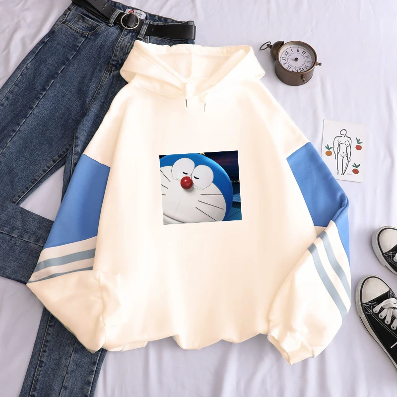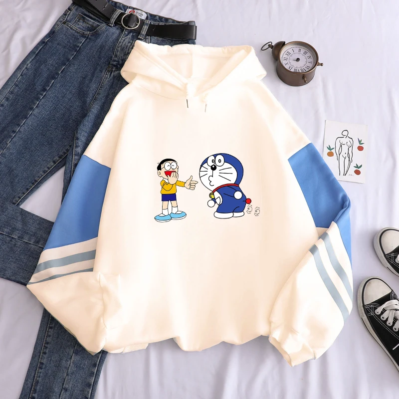 Толстовка Doraemon в стиле пэчворк для мужчин и женщин, свитшоты в стиле хип-хоп, тонкие бархатные теплые худи в стиле Харадзюку, Одежда большого размера для улицы