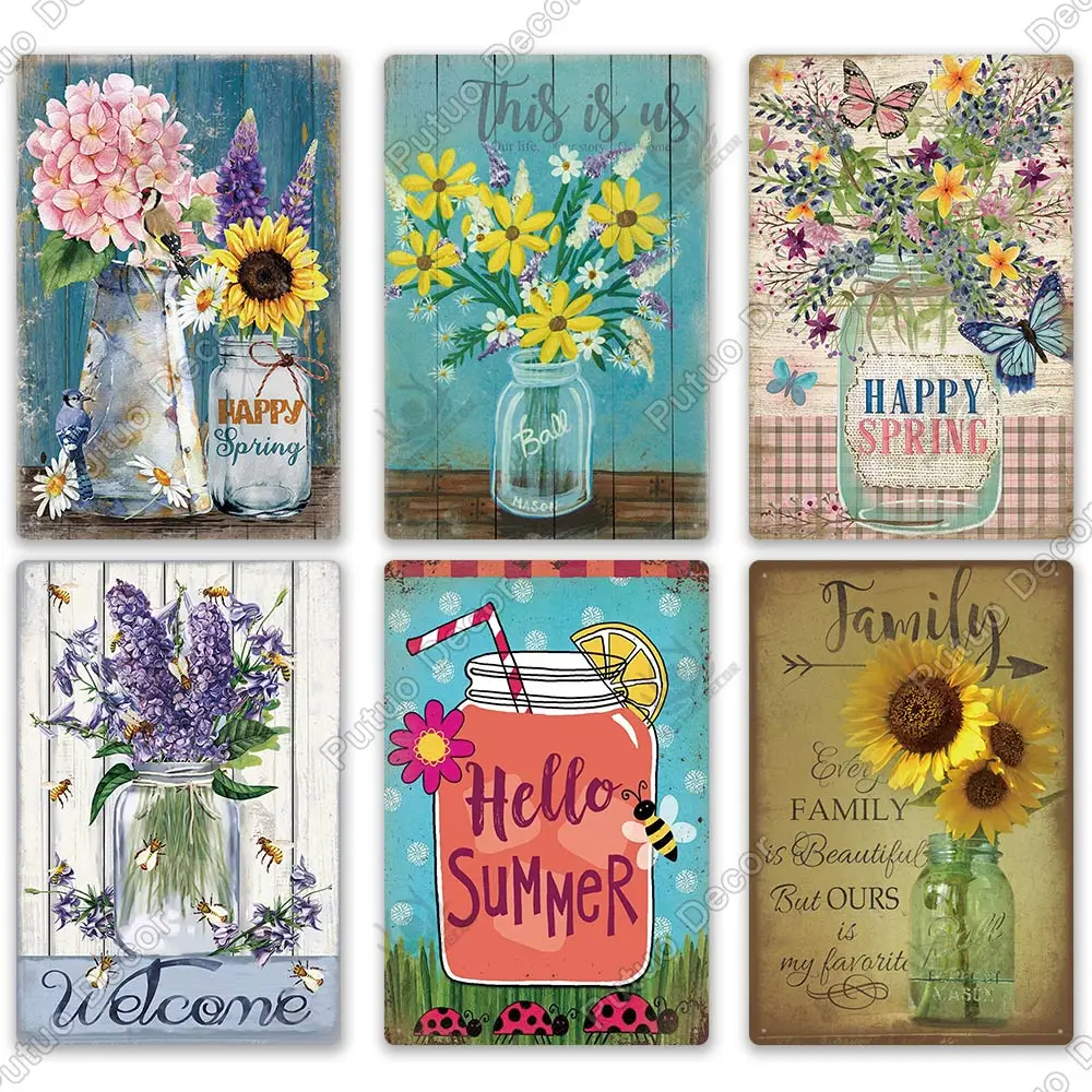 Декор Putuo, ВИНТАЖНЫЙ ПЛАКАТ с цветами, металлический жестяной зна...
