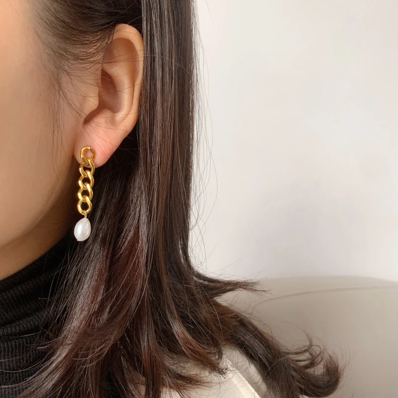 GHIDBK массивные дизайнерские натуральные пресноводные жемчужные цепочки асимметричные серьги-гвоздики серьги из нержавеющей стали в уличном стиле оптовая продажаМатериал: нержавеющая стальОсобенность: минималистичные демонстрационные ювелирные изделия в продаже, ювелирные аксессуары, женская мода, лучший подарок для друга.