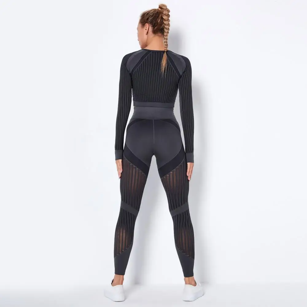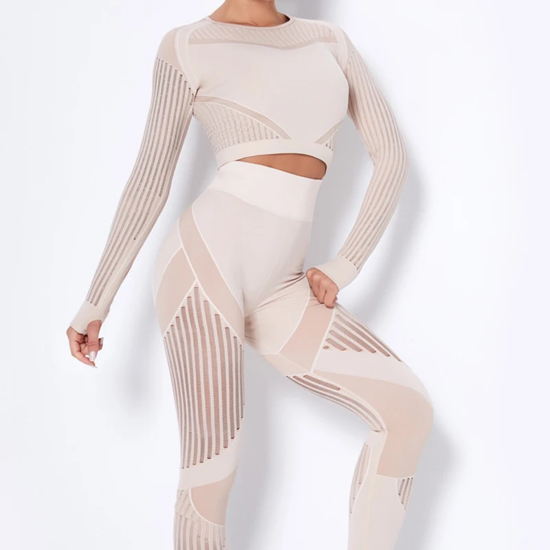 Тренировочная одежда для женщин, бесшовный ажурный костюм для йоги ...