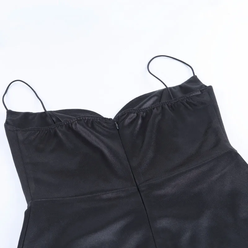 Платье миди на бретелях-спагетти, черное пикантное вечернее Клубное...